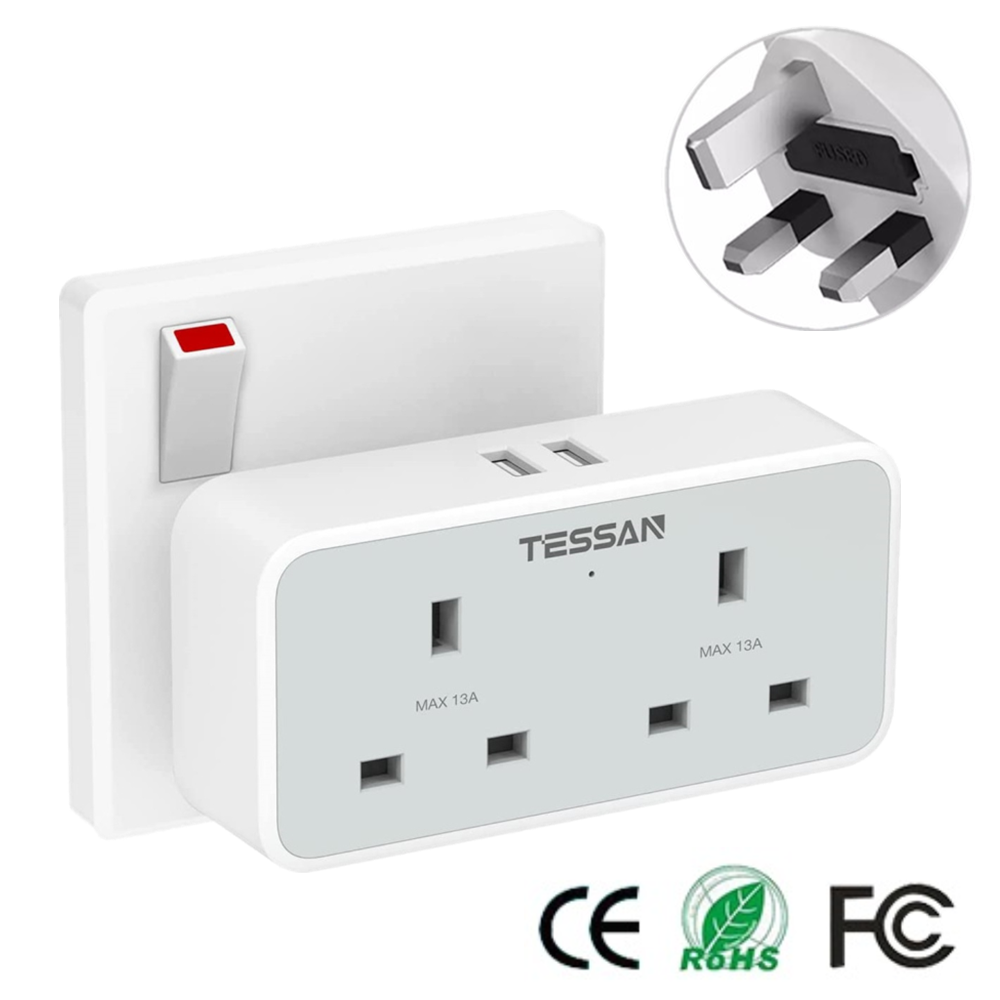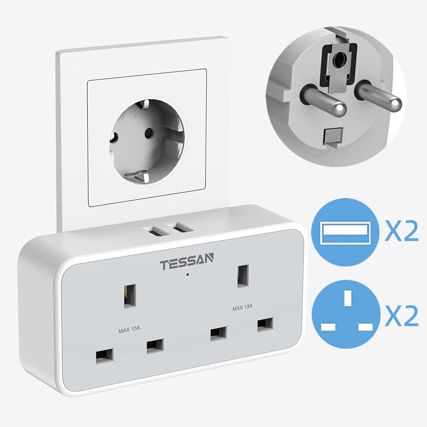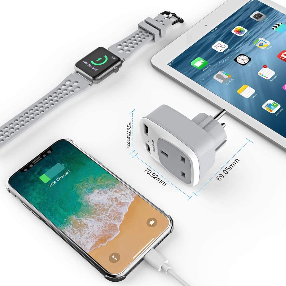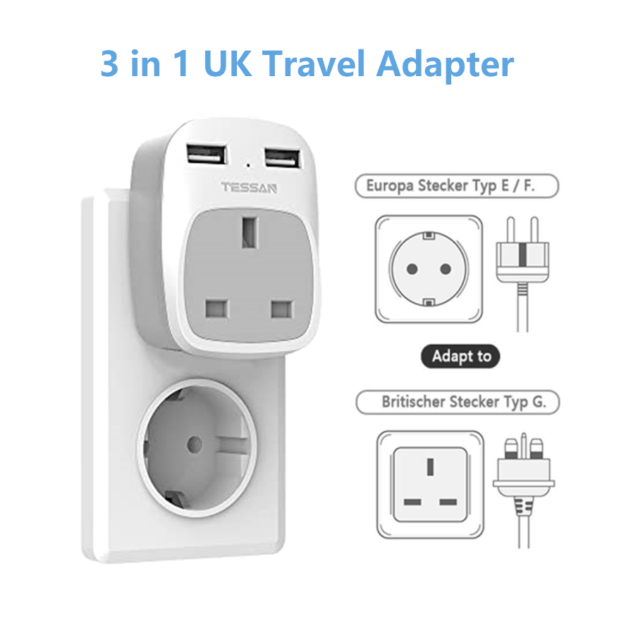 • Multi plug extension - This outlet extender features 2 grounded AC outlets and 3 USB ports, ideal for charging indoors without bulky extension cords. One adaptor for five devices, Max capacity up to 3250W(250V/13A)