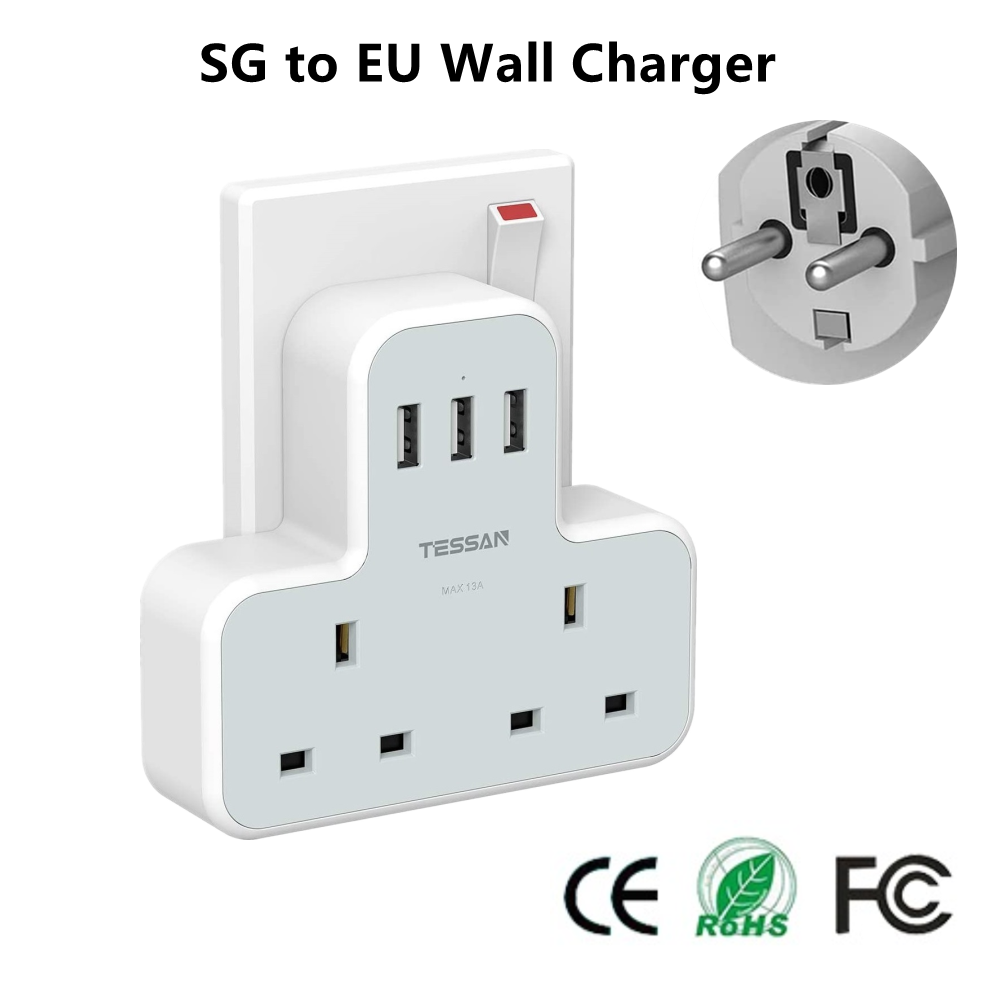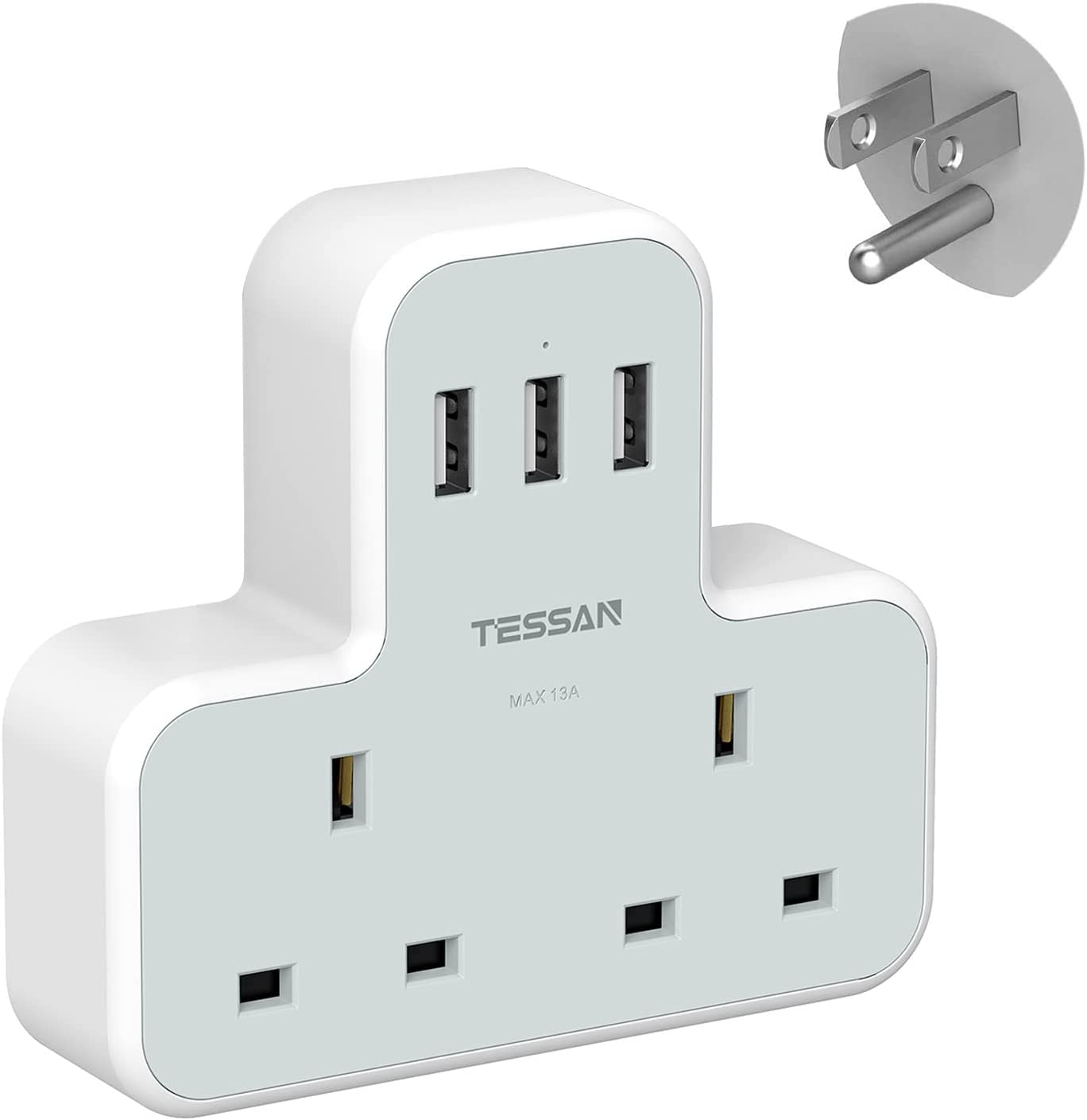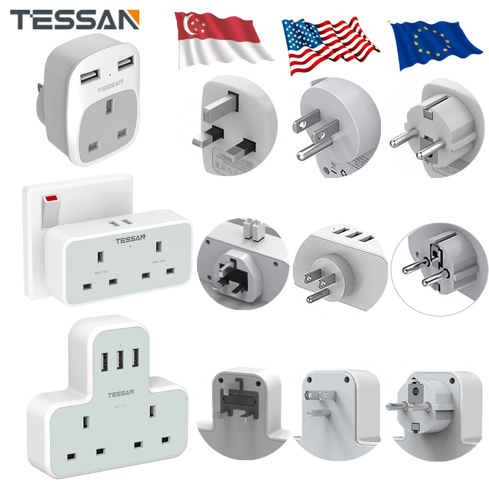 TESSAN UK Plug Travel Adapter SG to US/EU Travel Plug with USB , 1/2/3 Way Wall Charger Power Strip with 2/3 USB Ports and 1/2/3 AC Outlets,USB Adapter Wall Socket for America Canada Taiwan / Thailand