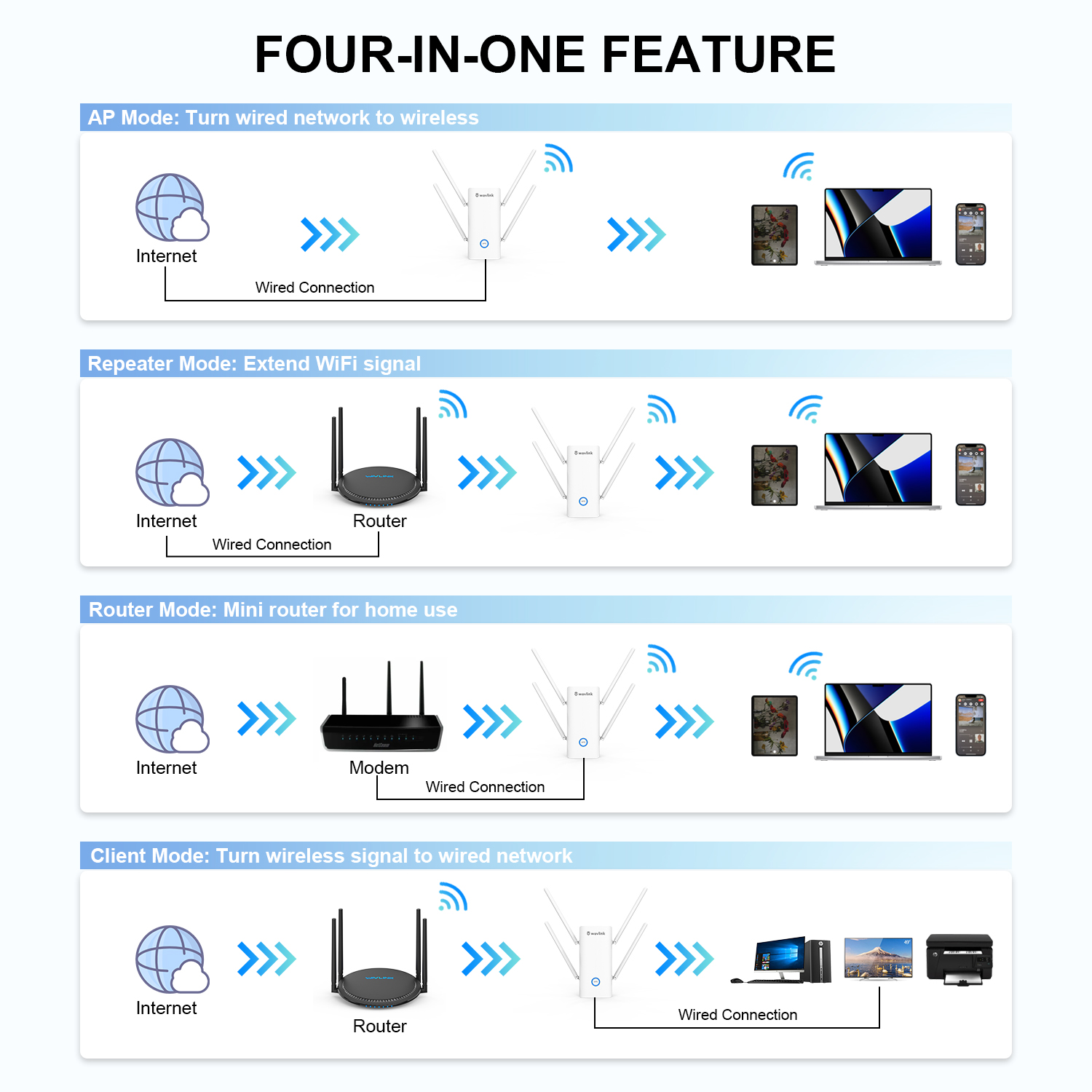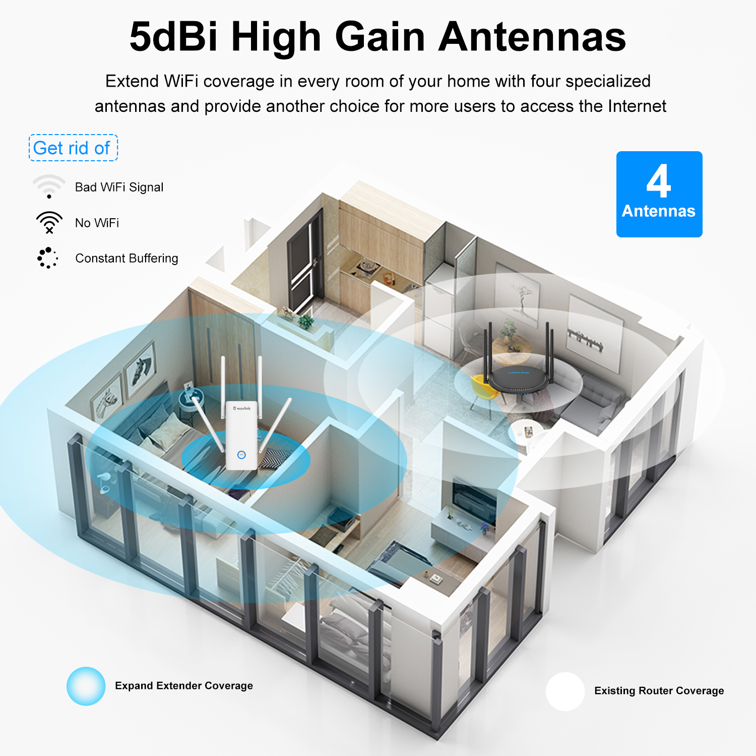 Wave 2 MU-MIMO: MU-MIMO enables the extender talk to several devices at once over the same WiFi band, maximizes the performance of all your devices.
