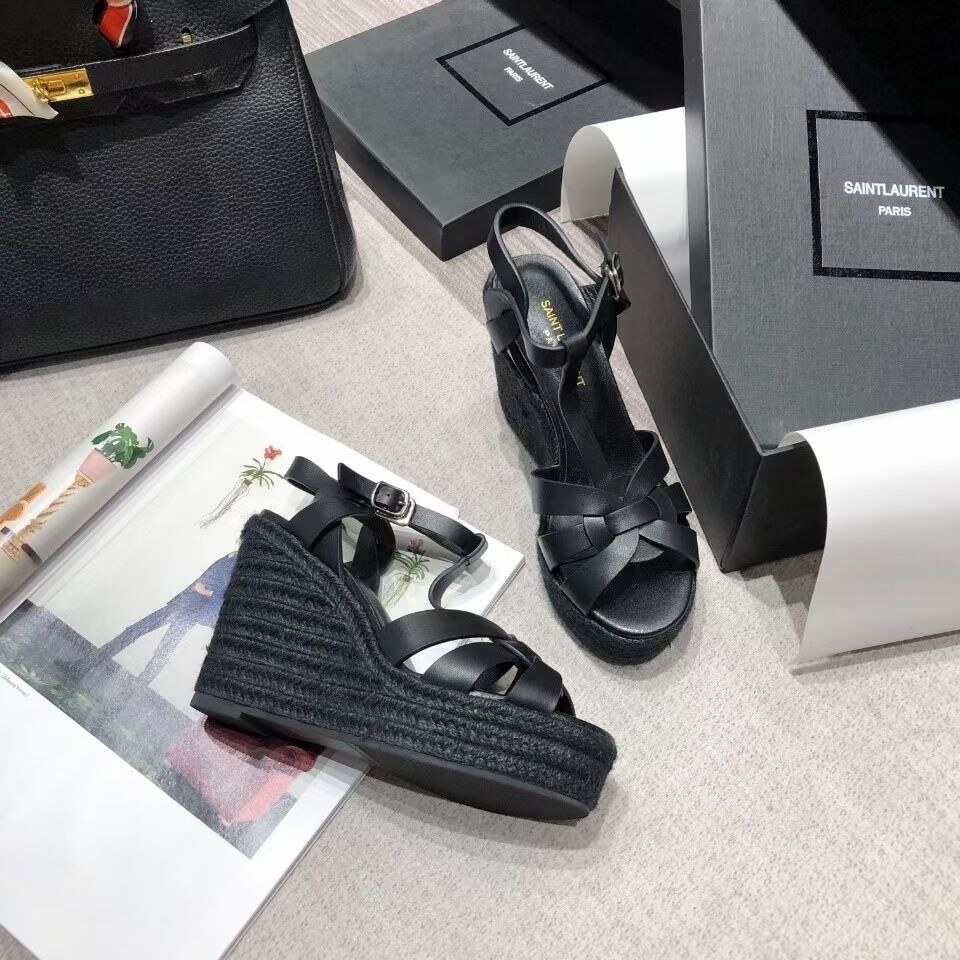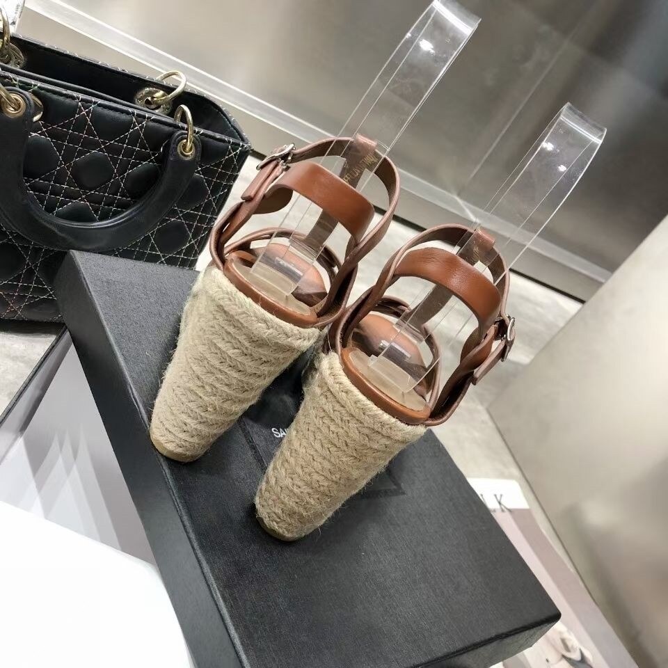 Women's genuine leather wedge sandals 2022 summer new fashion all-match comfortable casual refreshing thick bottom wedge heel sandals 9CM