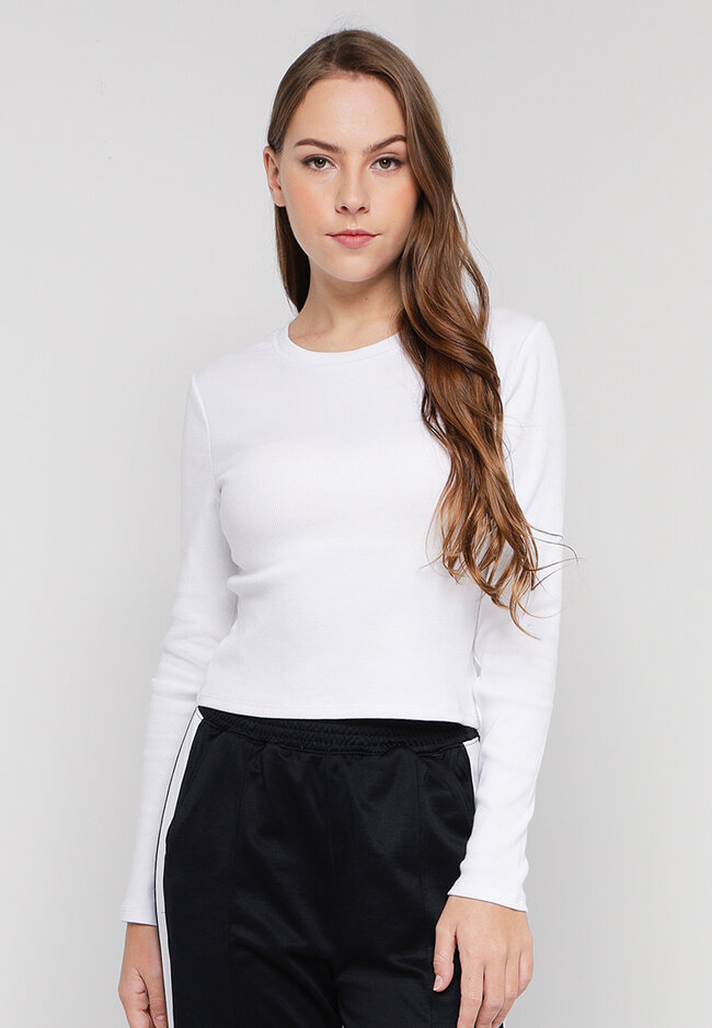 - Solid tone long sleeve T-shirt- Sizing runs one size larger- Unlined- Crew neckline- Regular fit- Cotton blend- Model wears an S and is 170cm tall