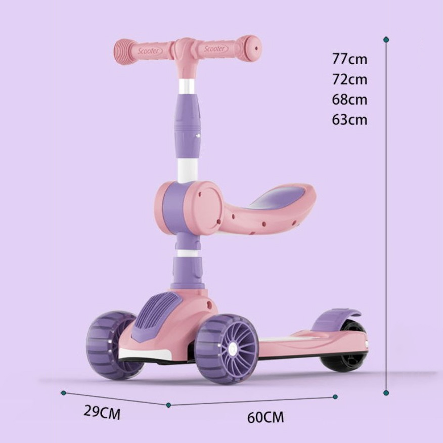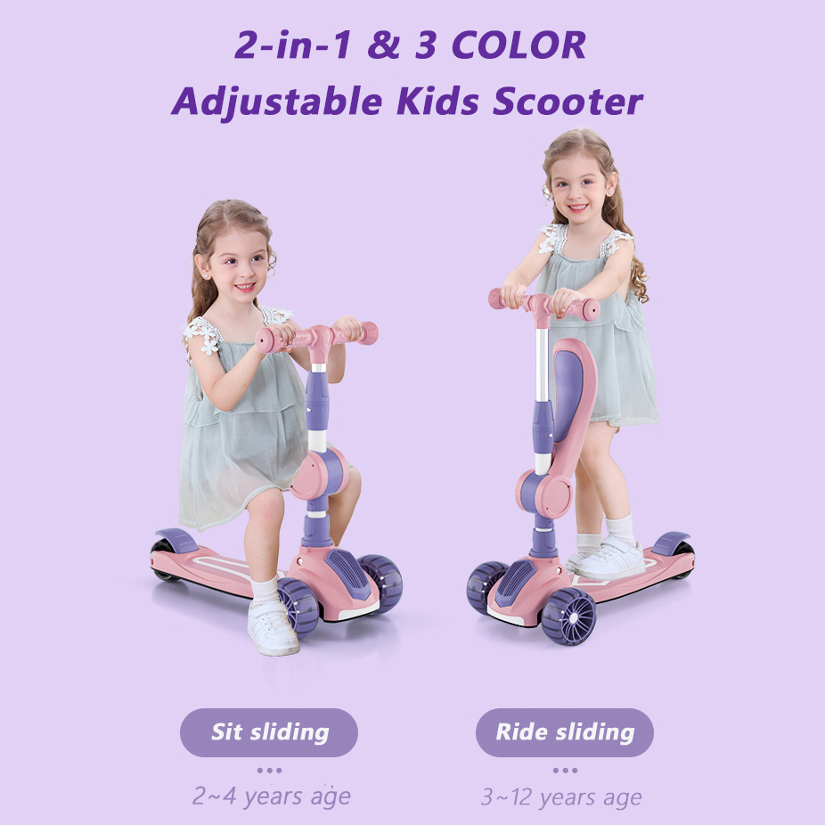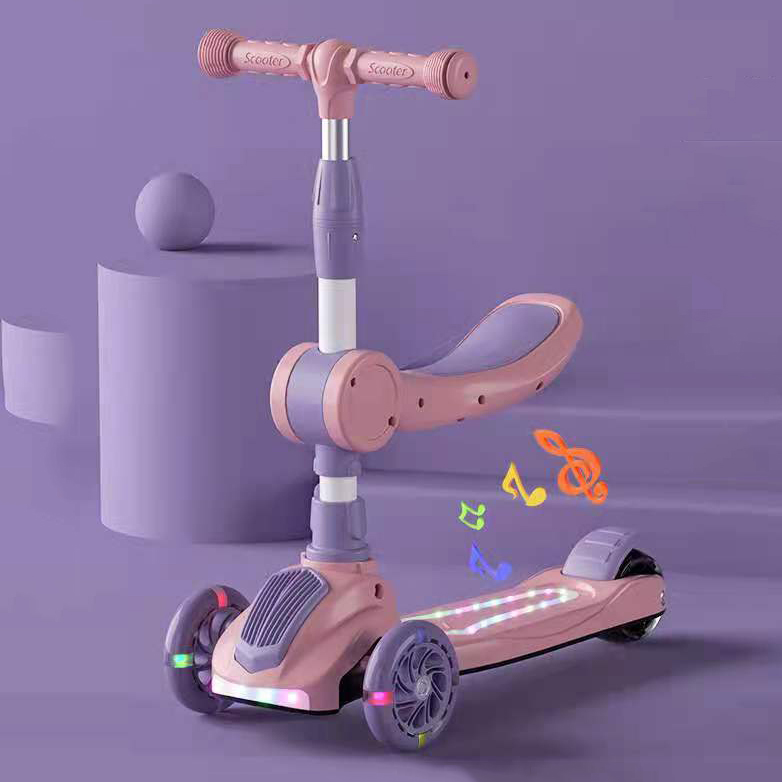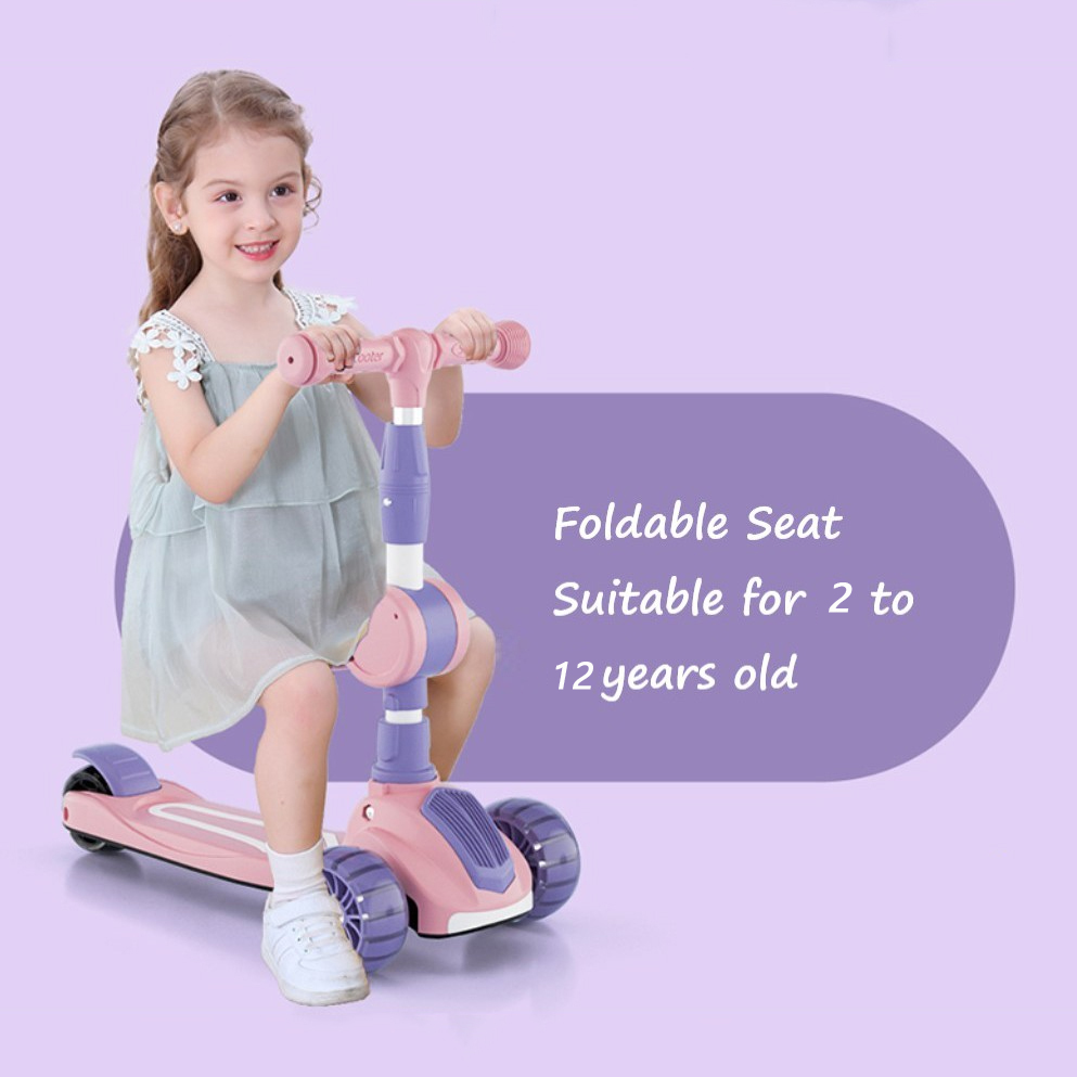 OneTwoFit Kids Adjustable Light Scooter With Seat Music Colored Children Scooters
