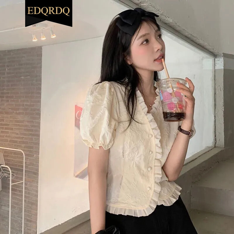 EDQRDQ Women Victorian Puff Sleeve Tops Vintage Ruffled Button Down Blouse