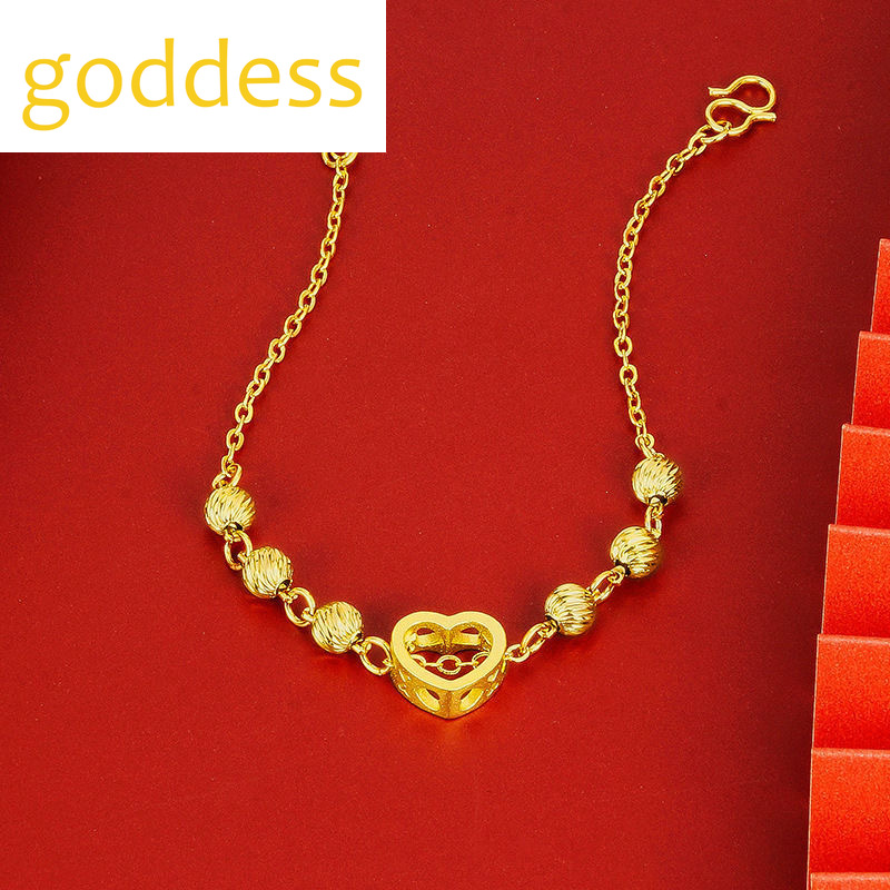 Pure Gold 18k Pawnable Saudi Legit Original Not Fading Necklace for Women Peach Heart Heart-shaped Pendant Birthday Present Water Ripple Chain Good Luck Couple Necklace Girlfriend Gift Fasion Jewellery Necklace and Free Round Luck Bead Love Bracelet Set