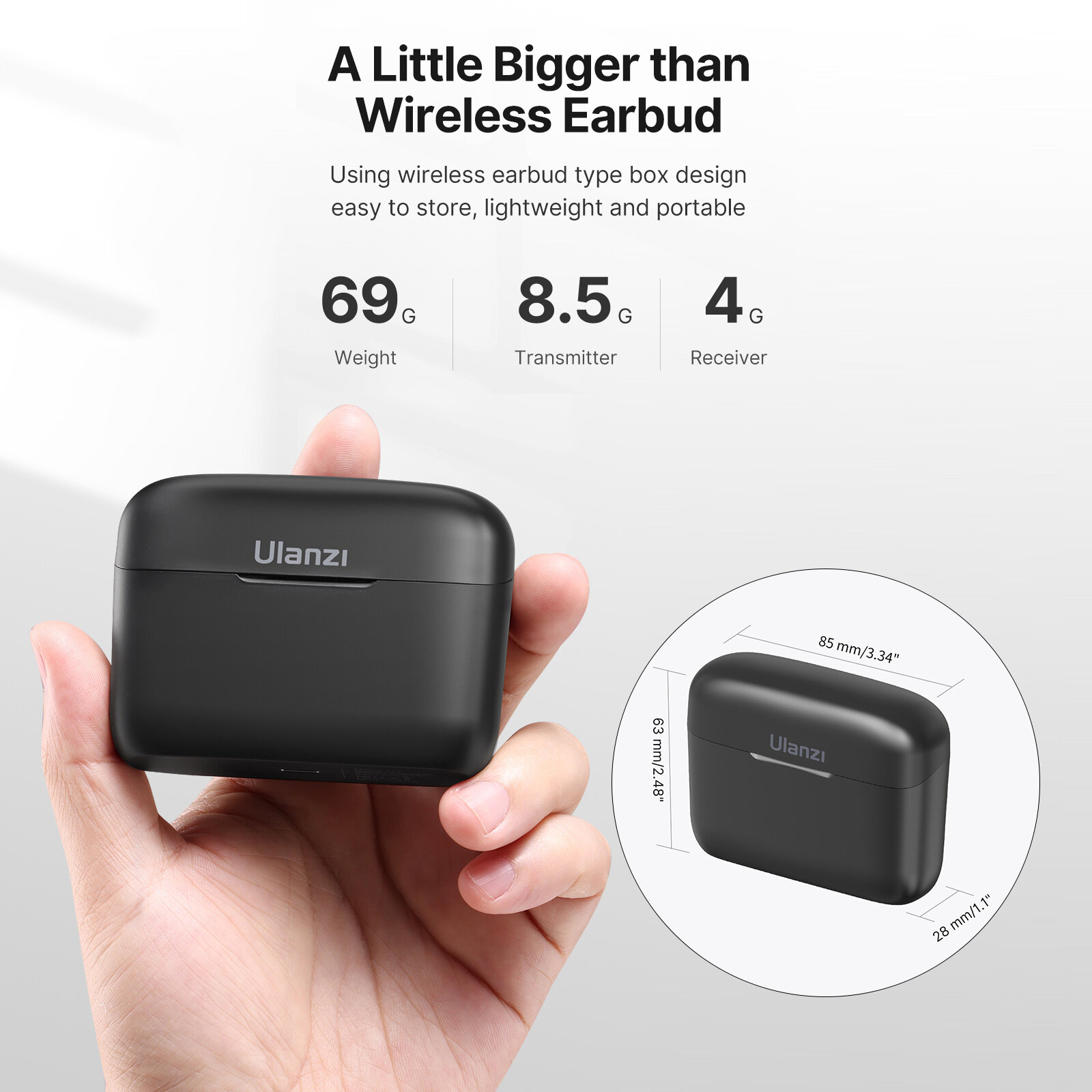 【With Wireless Charging Case】Comes with a wireless charging case, just put the mic transmitters and receiver into it, than you can charge them anywhere anytime. The charging case supports 4-5 times charging after being fully charged. Mini and lightweight, easy to carry around.