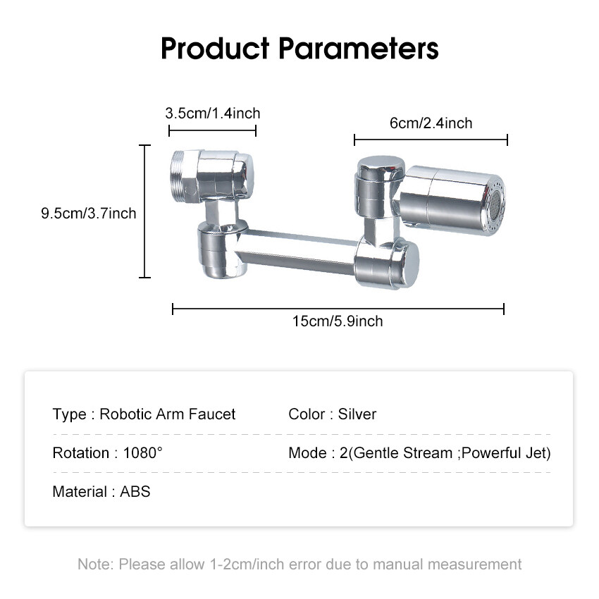JvGood Faucet Tap Kitchen 1080° Rotatable Water Tap Extension Splash-proof Faucet Mechanical Arm Faucet Water Nozzle Faucet Adaptor Kitchen Tap with 2 Water Outlet Modes