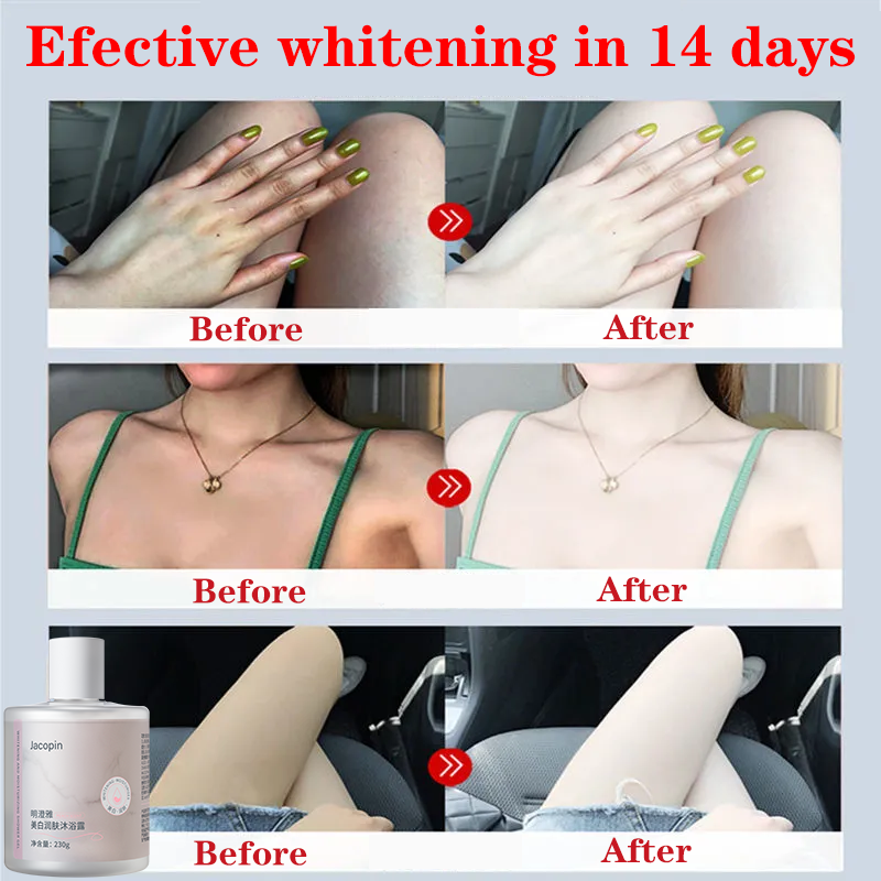 • Usage: 1. Take an appropriate amount of Whitening shower gel in the palm of your hand or match it with a shower ball 2. Gently massage the whole body to pro-duce rich foam 3. Rinse with clean water after bathing