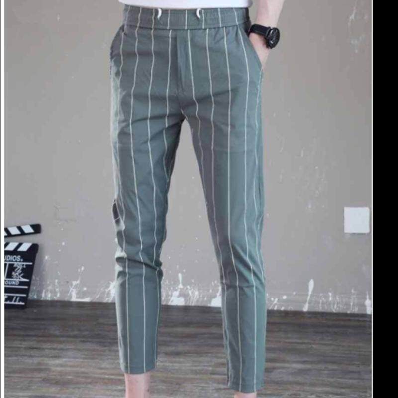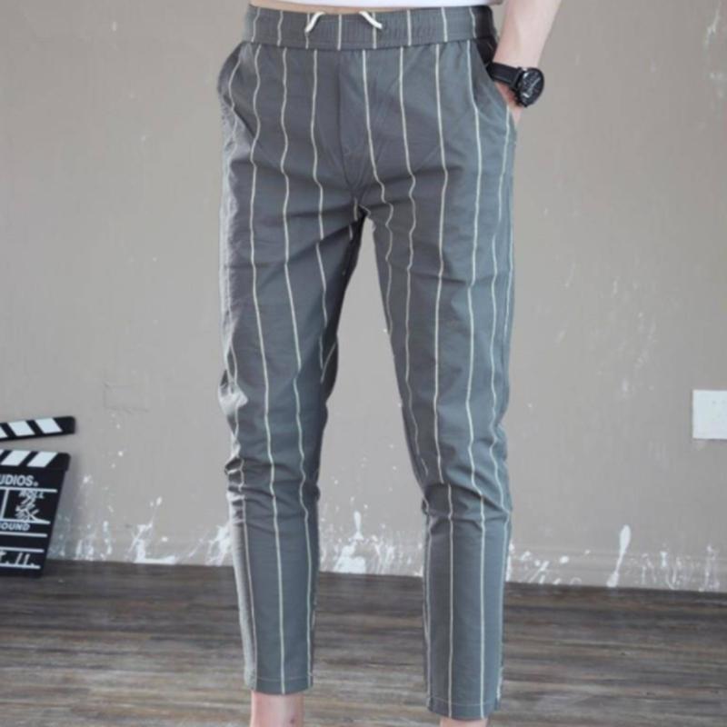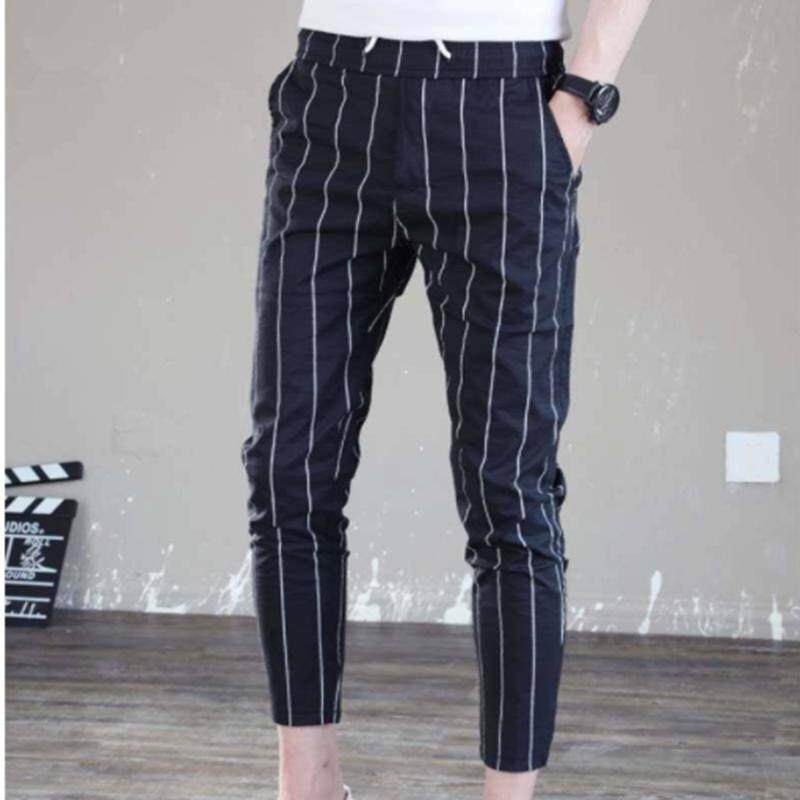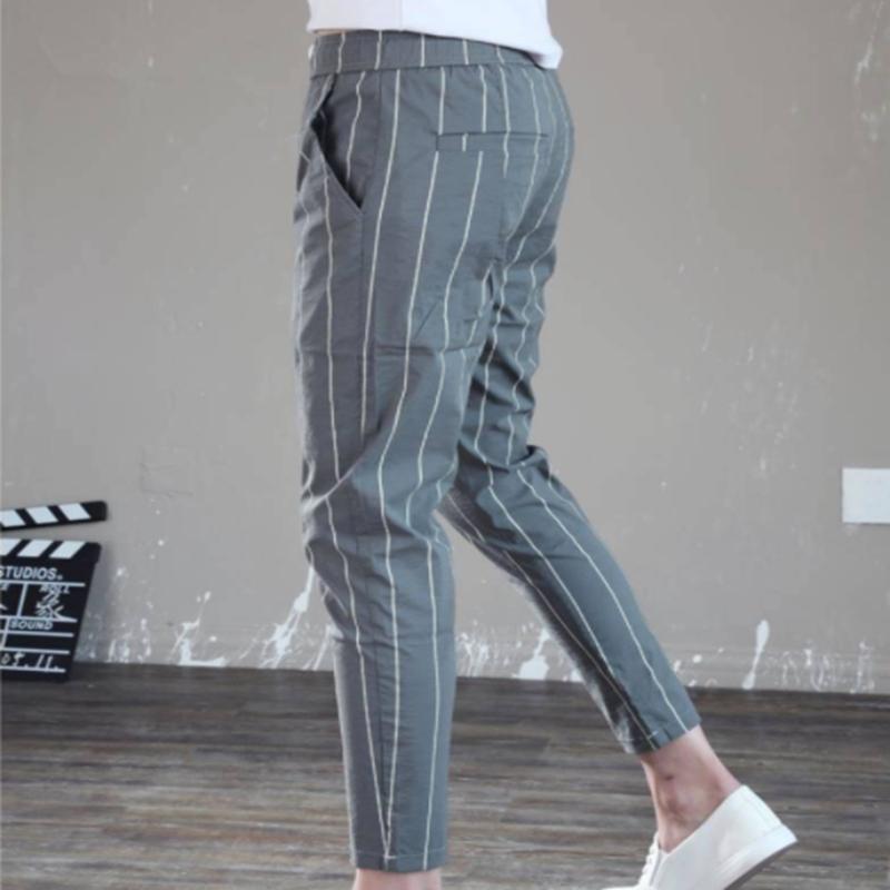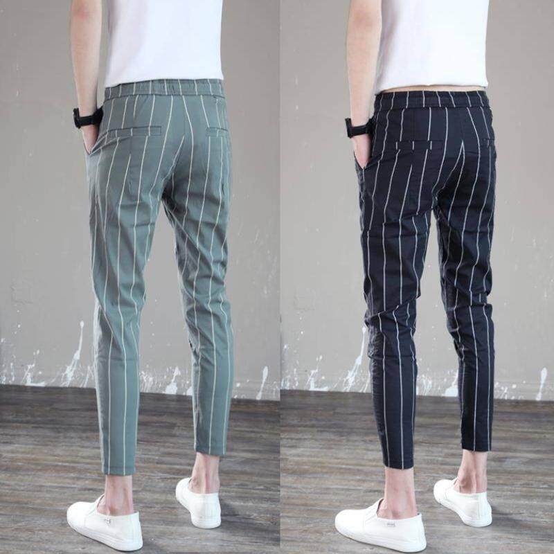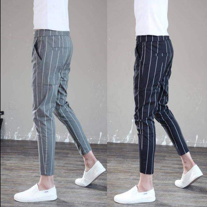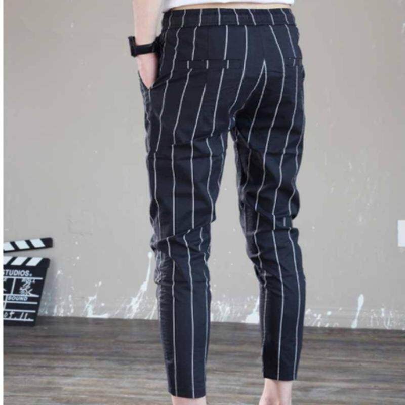 Korean Version Slim Fashion Casual Trend Vertical Stripes Nine Points Beam Trouser Pants for Young Men
