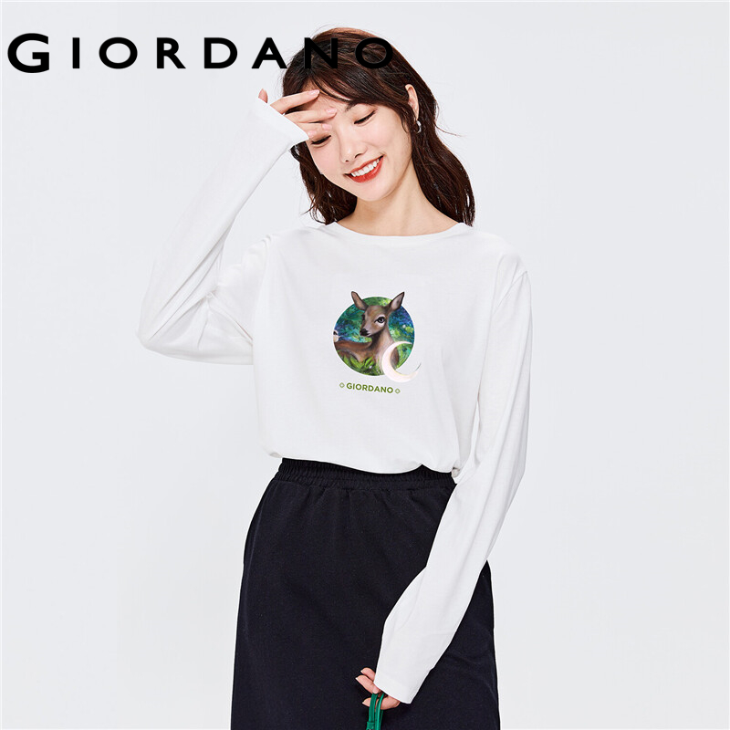 GIORDANO Women ARTAND Series T-Shirts Quality Print 100% Cotton Tee Spring Fall Long Sleeve Simple Casual T-Shirts 99392101