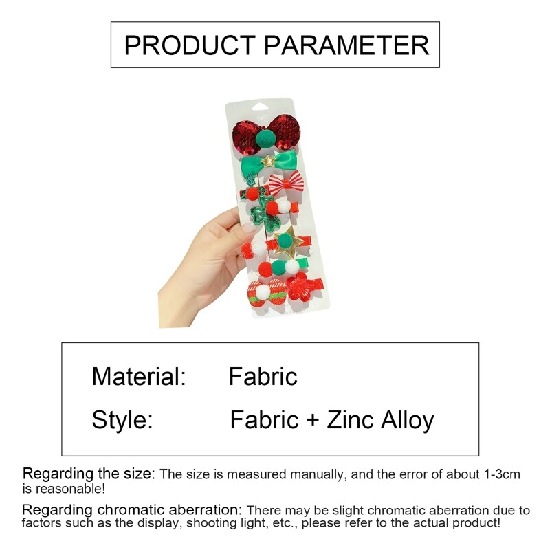 Features:New Christmas Headdress Hairpins Christmas Clips Children's Hair Accessories Women's Hair Hoops Notice:For manual measurement, please allow 1-3cm error Size:F Material:Cloth + zinc alloy Package Includes:a set hairpin Size: please allow 1-2cm differs due to manual measurement, thanks. Note: Due to the difference between different monitors, the picture may not reflect the actual color of the item. We guarantee the style is the same as shown in the pictures, but not the same performance on different bodies as on the model. Thank you!