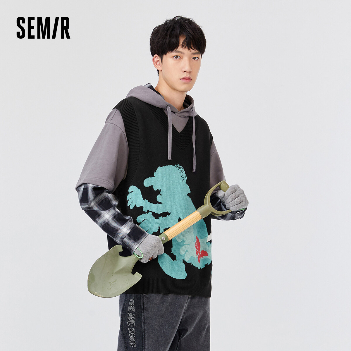 Semir Knitted Vest Men 2021 Autumn New Loose Sleeveless V-Neck Men'S Vest Sweater