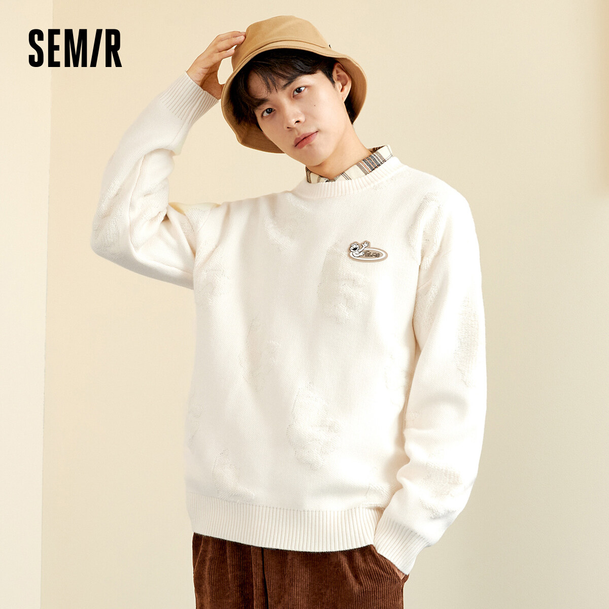 Semir Sweater Men 2022 Winter New Style Knitted Sweater Fashion Korean Version Drop Shoulder Simple Cartoon Top