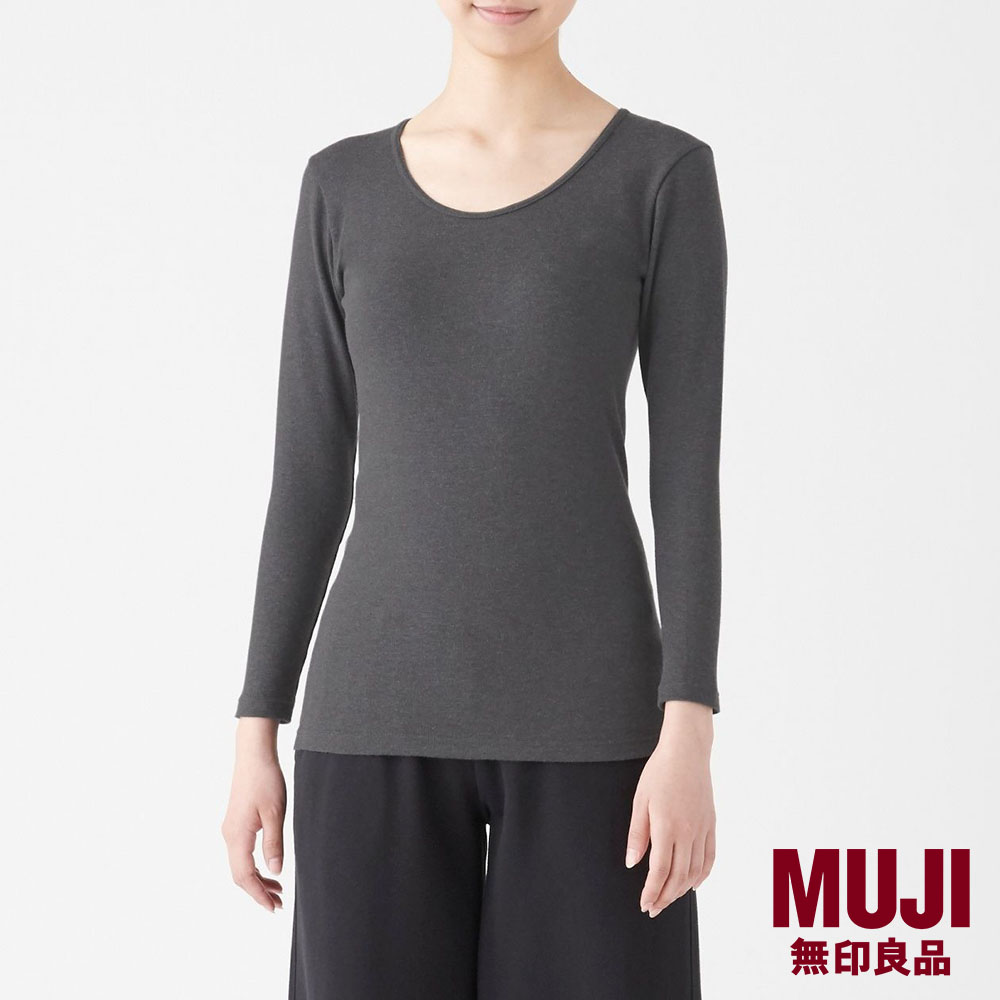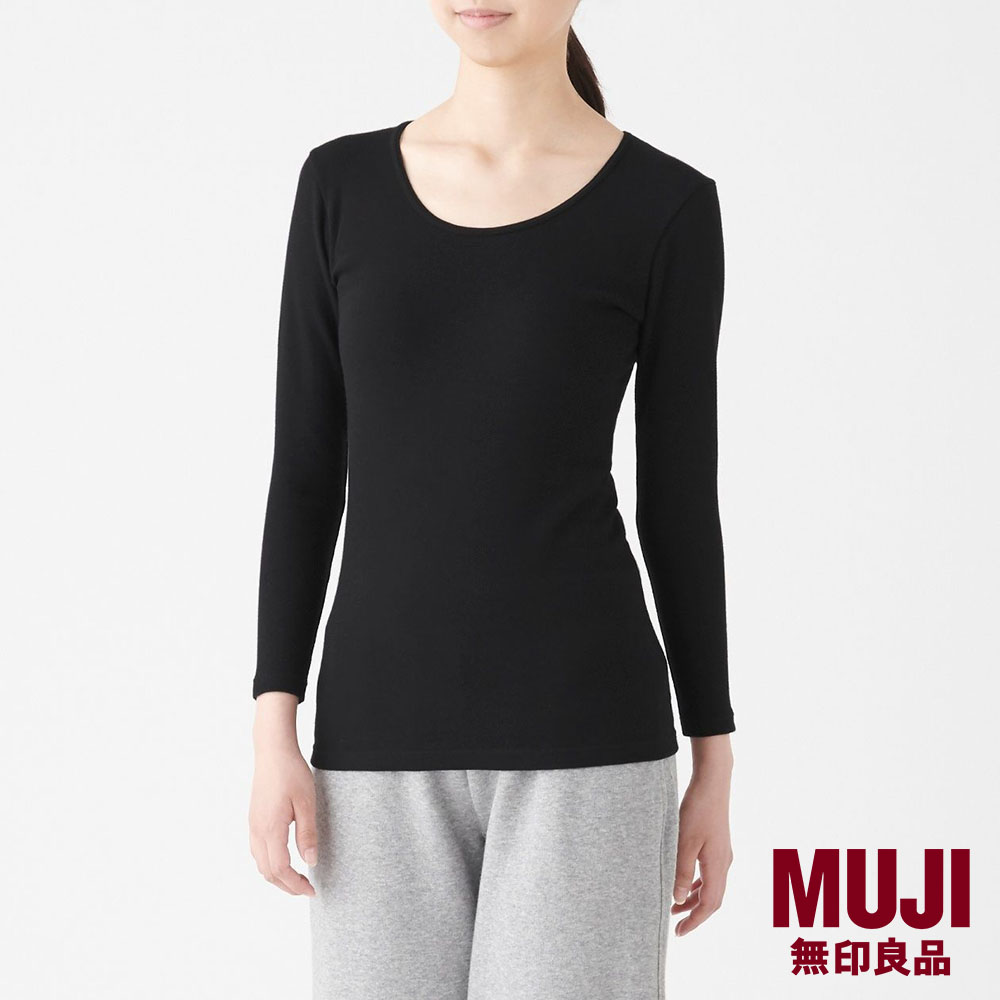 MUJI Ladies Cotton Wool Warm U Neck 4/5 Sleeve T Shirt