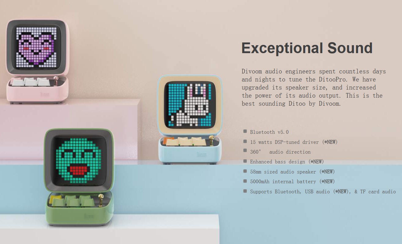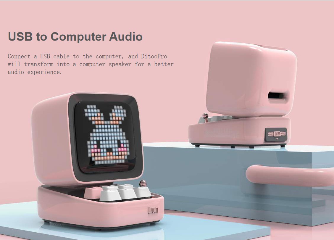 It’s the most visually pleasing, funnest, and feature-packed little speaker you can get. The keys on this model are unique in that it uses backlit mechanical keyswitches on mini keyboard and the bright colors on the 16 x 16 pixel "monitor" which adds to the theme of a small retro computer.