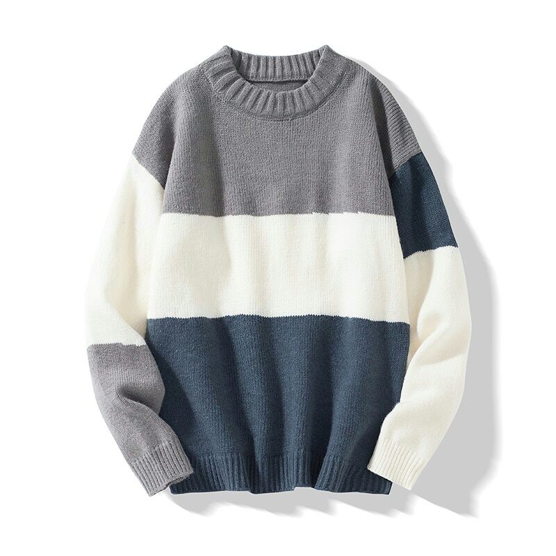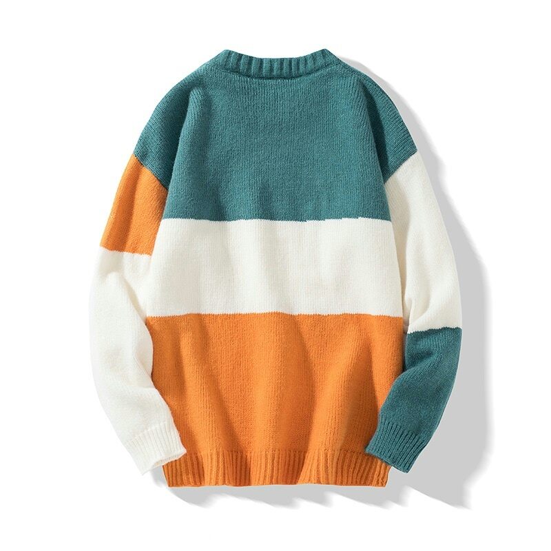 Sweater Men's Winter New Warm Loose Cotton Knitwear Contrast Color Bottoming Sweater Korean Style Couple Thickened Top Clothes