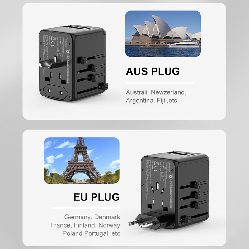 Universal Travel Plug Adapter Charger PD35W Fast Charging 3 USB PORT + 2 TYPE C PORT - US/UK/AU/EU Port Wall Charger