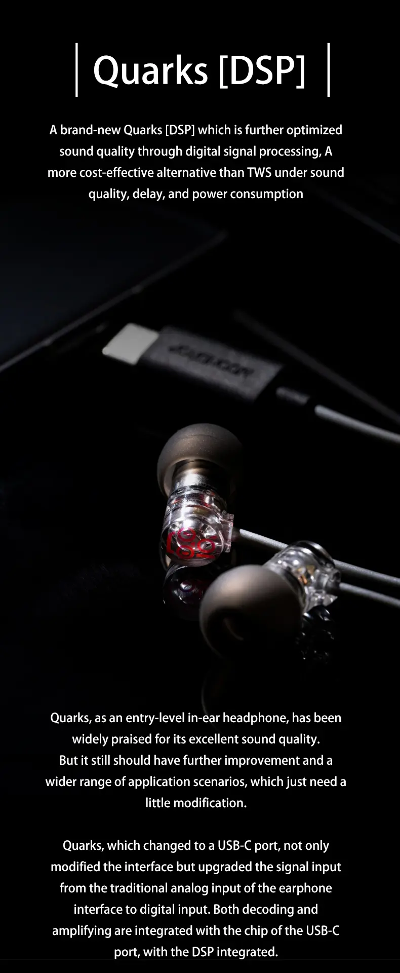 > Moondrop has redesigned the classic Quarks with a Type-C connection port. It supports easy connectivity with most latest smartphones and laptops. It not only gets a modified connection interface but also has upgraded signal input via integrated DSP adjustments.