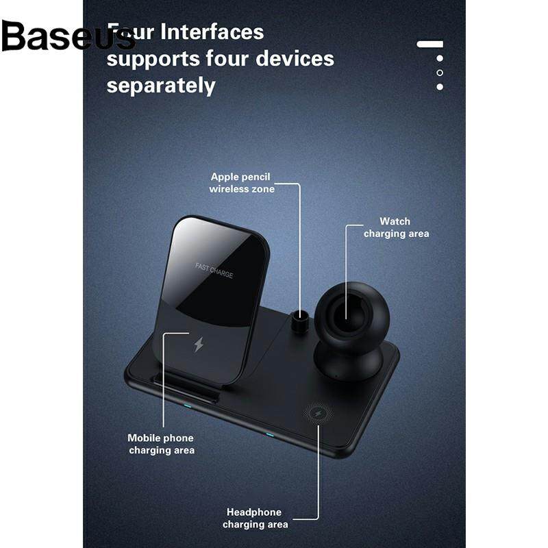 Baseus W58 Wireless Phone Charger 4 in 1 Wireless Charging Stand for Apple Watch AirPods Pro Stylus Pencil