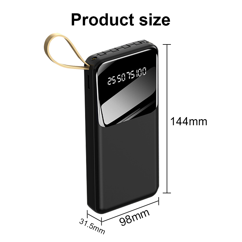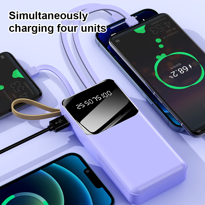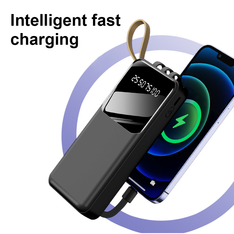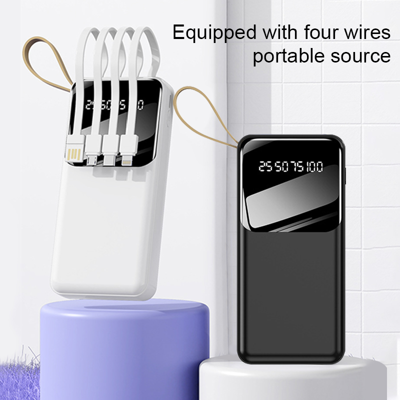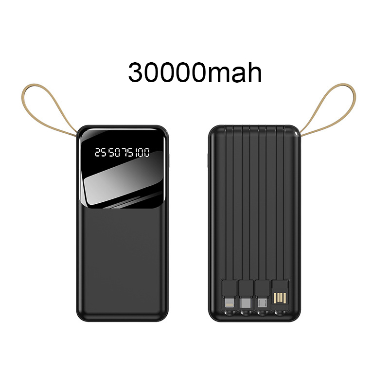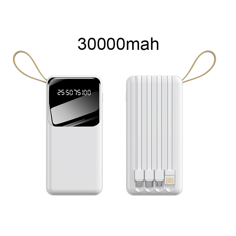 Fast Charging Power Bank With Cable Powerbank 30000 Mah 20000mAh 4 in 1 Large-Capacity PowerBank Display Digital Power Bank Chager