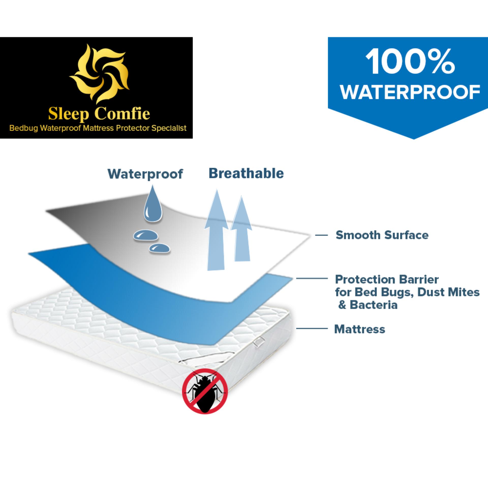 Bed Bug Waterproof Mattress Encasement or Bed Bug Mattress Protector Premium Plus (seamless zipper type) 6 sided protection (free waterproof pillow protector worth $11.9 with every purchase. X 2 for