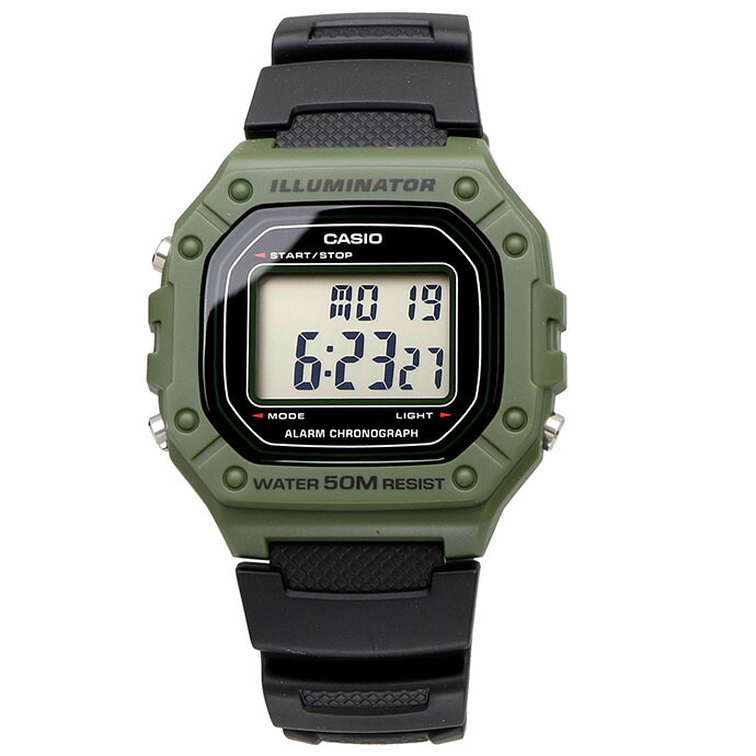 [Vinstore] Casio W-218H Green Resin Digital Sports Army Men Watch W-218H-3AVDF W-218H-3A W-218H-3AV
