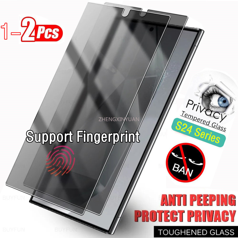 (Support Fingerprint) 1-2Pcs Privacy Tempered Glass For Samsung Galaxy S24 Ultra S24Plus Screen Protector For SamsungS24 S24Ultra S24+ Anti-Spy Lens Film Class