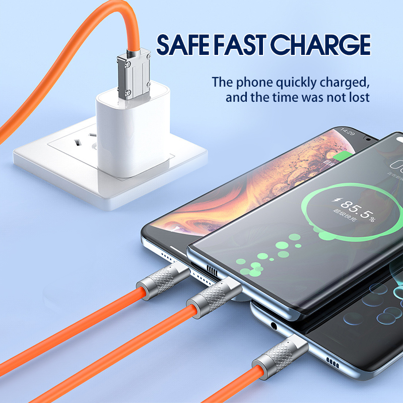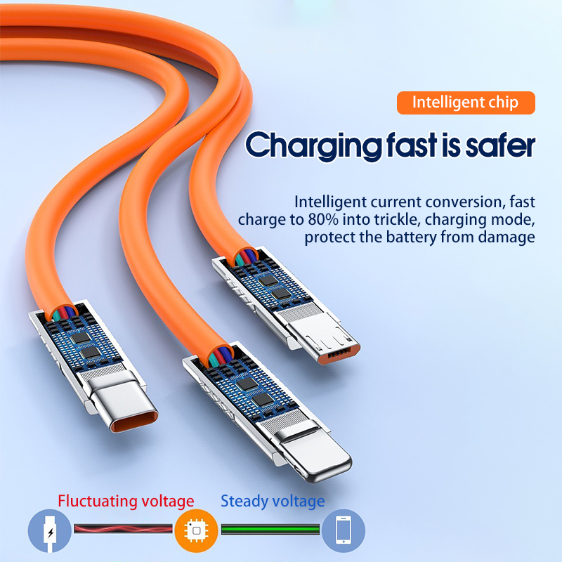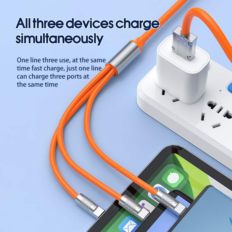 120W 3 in 1 Super Fast Charging Cable USB Type C Cable Type C/Lightning/Android 三合一数据线