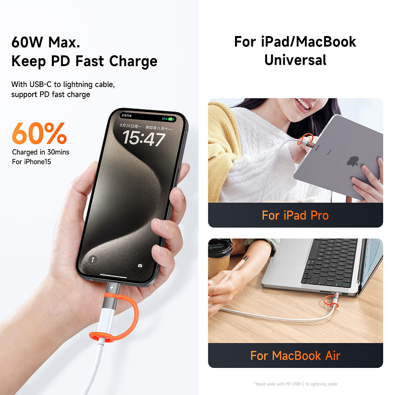 4 in1 Super Fast Charging Cable iPhone/Micro USB/Type C Data Cord for Huawei Samsung Xiaomi Quick Charge