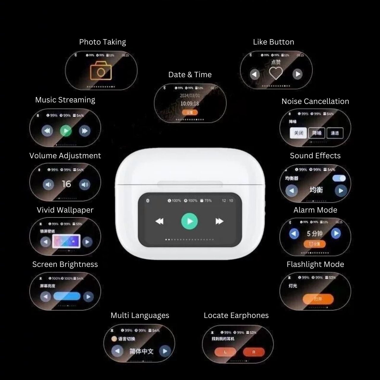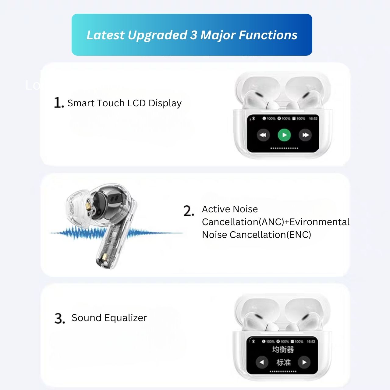 ?Sg Stock?Active Noise Cancellation(ANC) Earphones A9 Pro2 Wireless Bluetooth Earbuds LCD Touch Screen + ENC Microphone