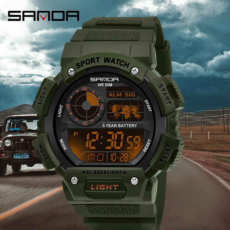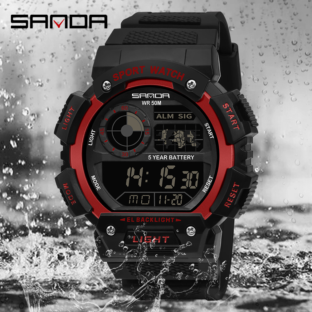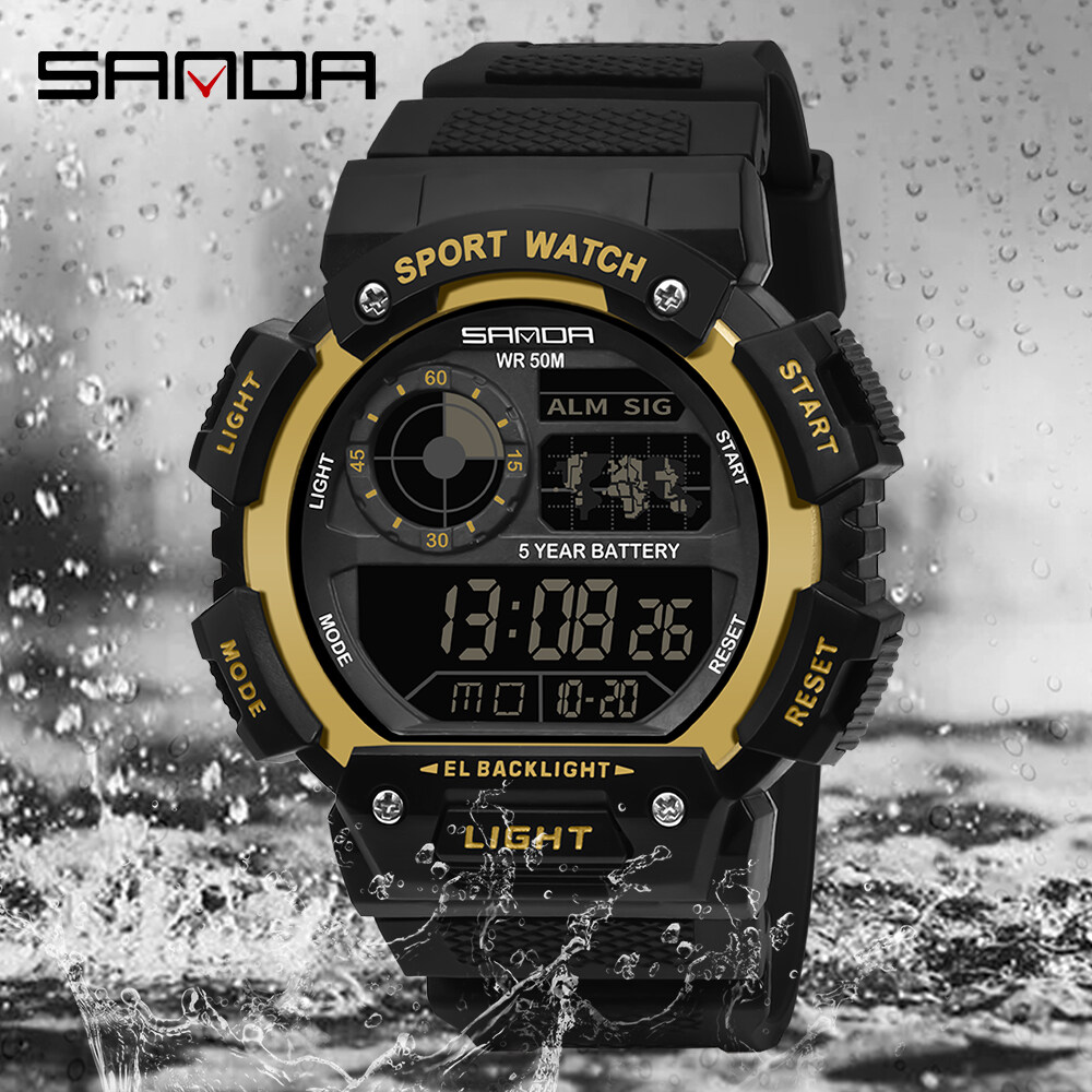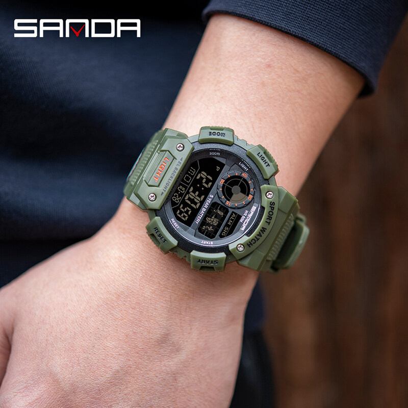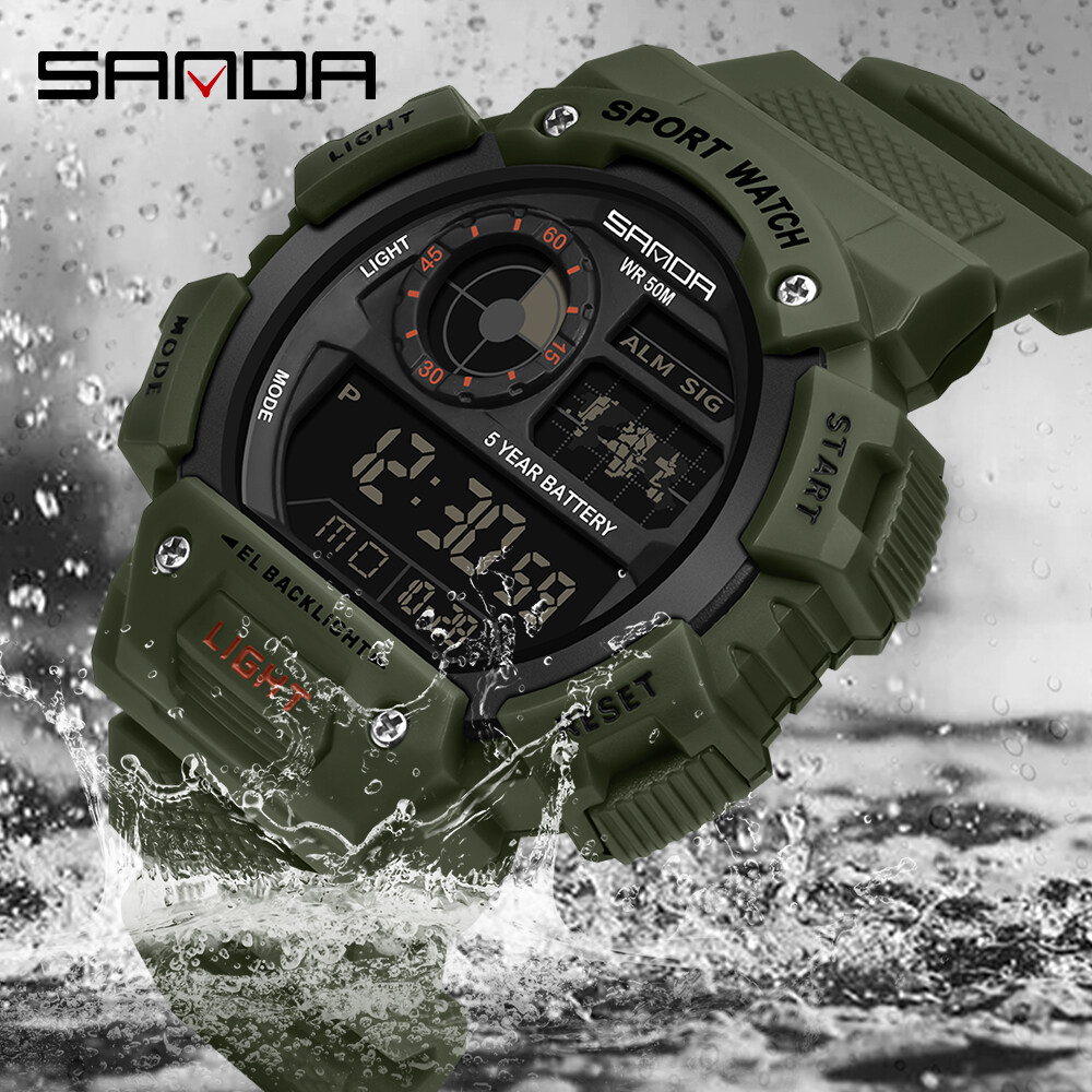 SANDA Men Watch Sports Waterproof Watch LED Display Multifunction Outdoor Military Watch Fashion Top Hot Sale Men's Watch Shockproof Digital Watch