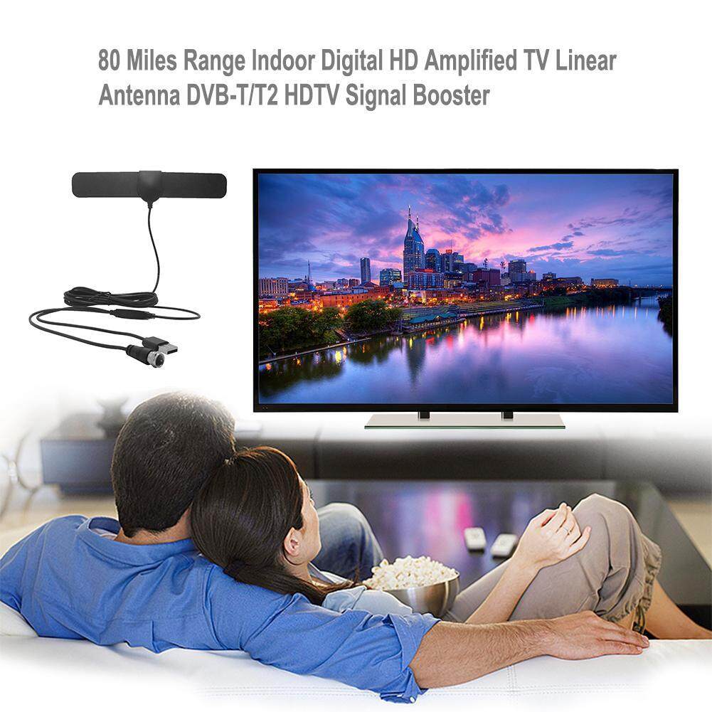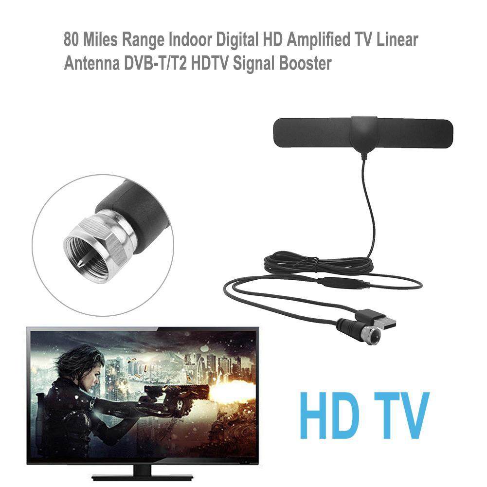 80 Miles Range Indoor Digital HD Amplified TV Linear Antenna DVB-T/T2 HDTV Signal Booster  Specification: Frequency: 174-240MHz/470-860MHz