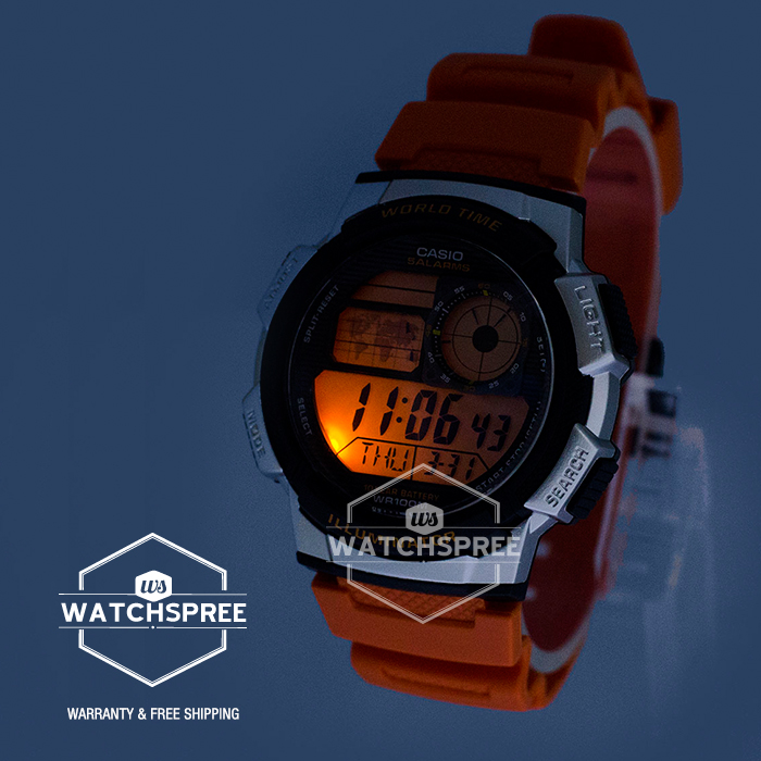 [Watchspree] Casio Men's Standard Digital Orange Resin Band Watch AE1000W-4B AE-1000W-4B