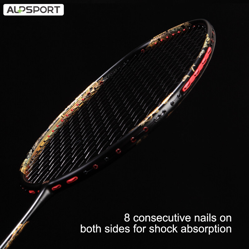 ALP TAJ 4U 35Lbs 7mm G5 Powerful Excalibur Golden Dragon Badminton Racket With Secondary Reinforced Full Carbon Fiber Reket Pro Offensive Single Training Raket With Gift Box