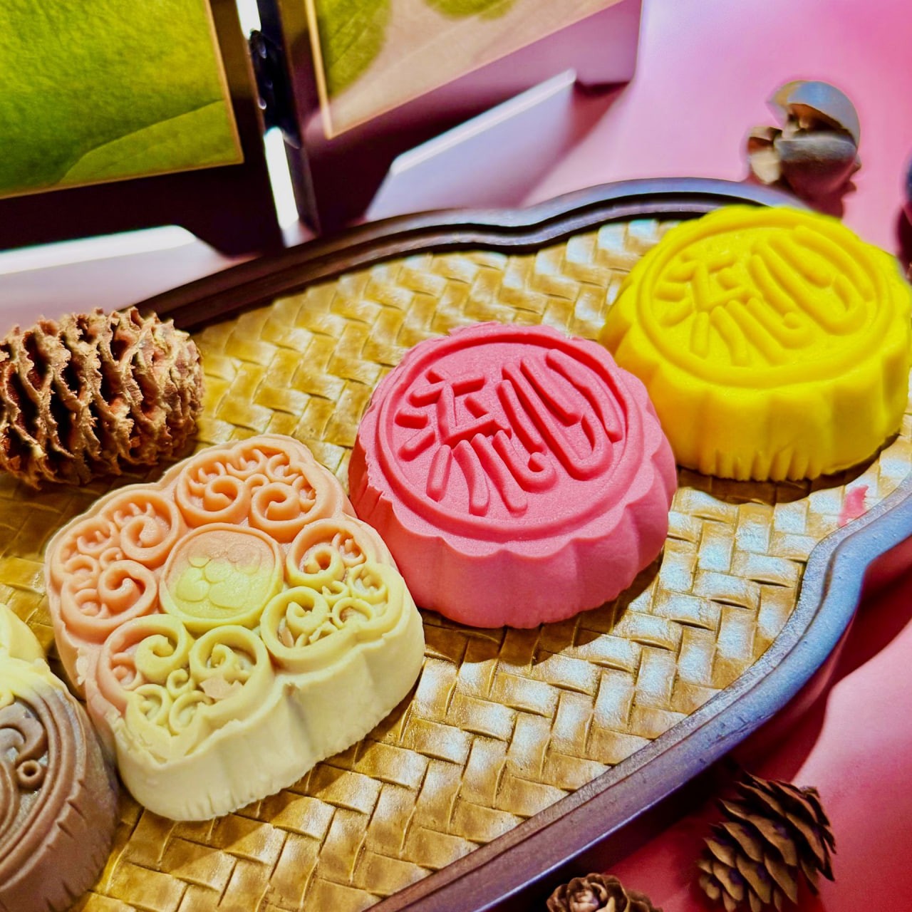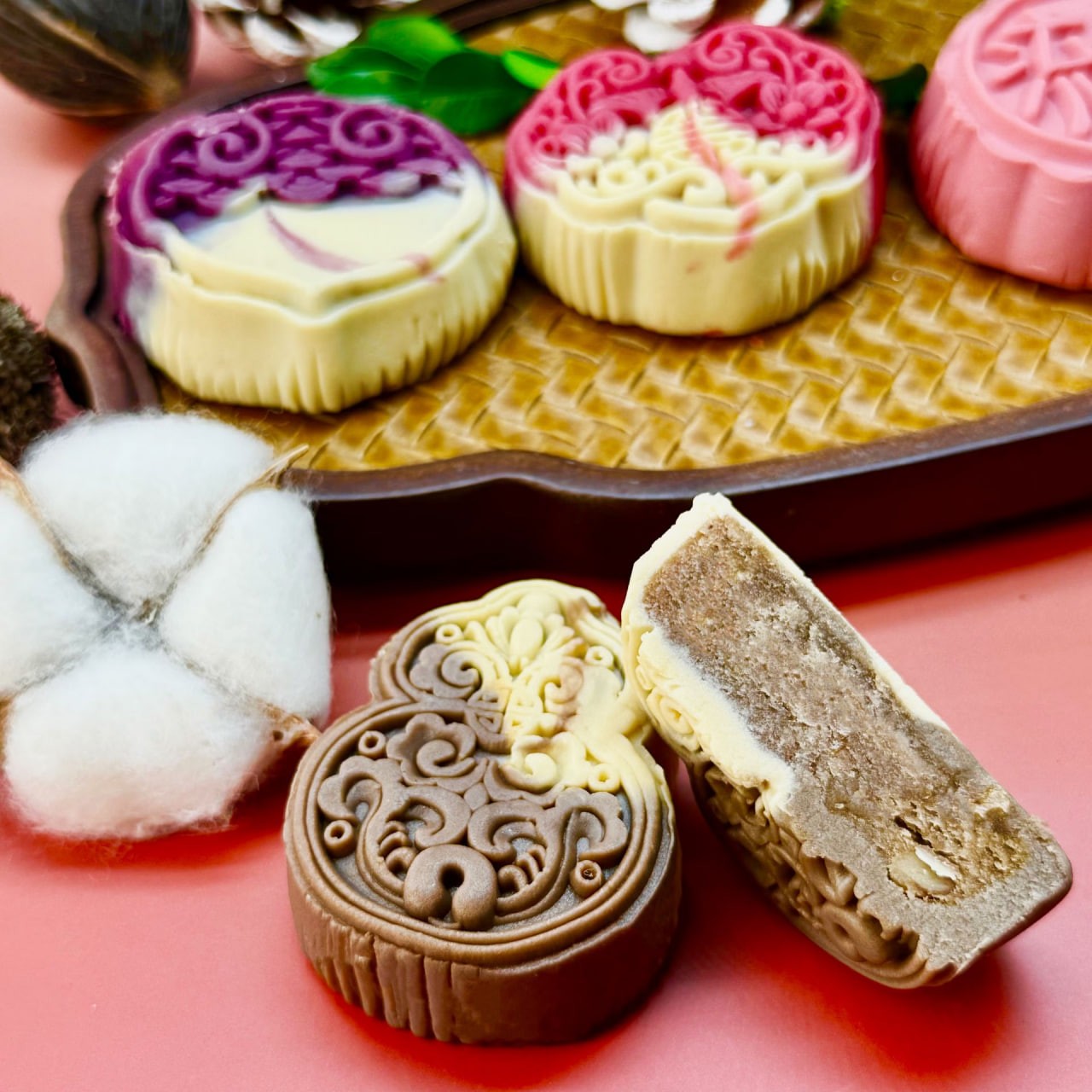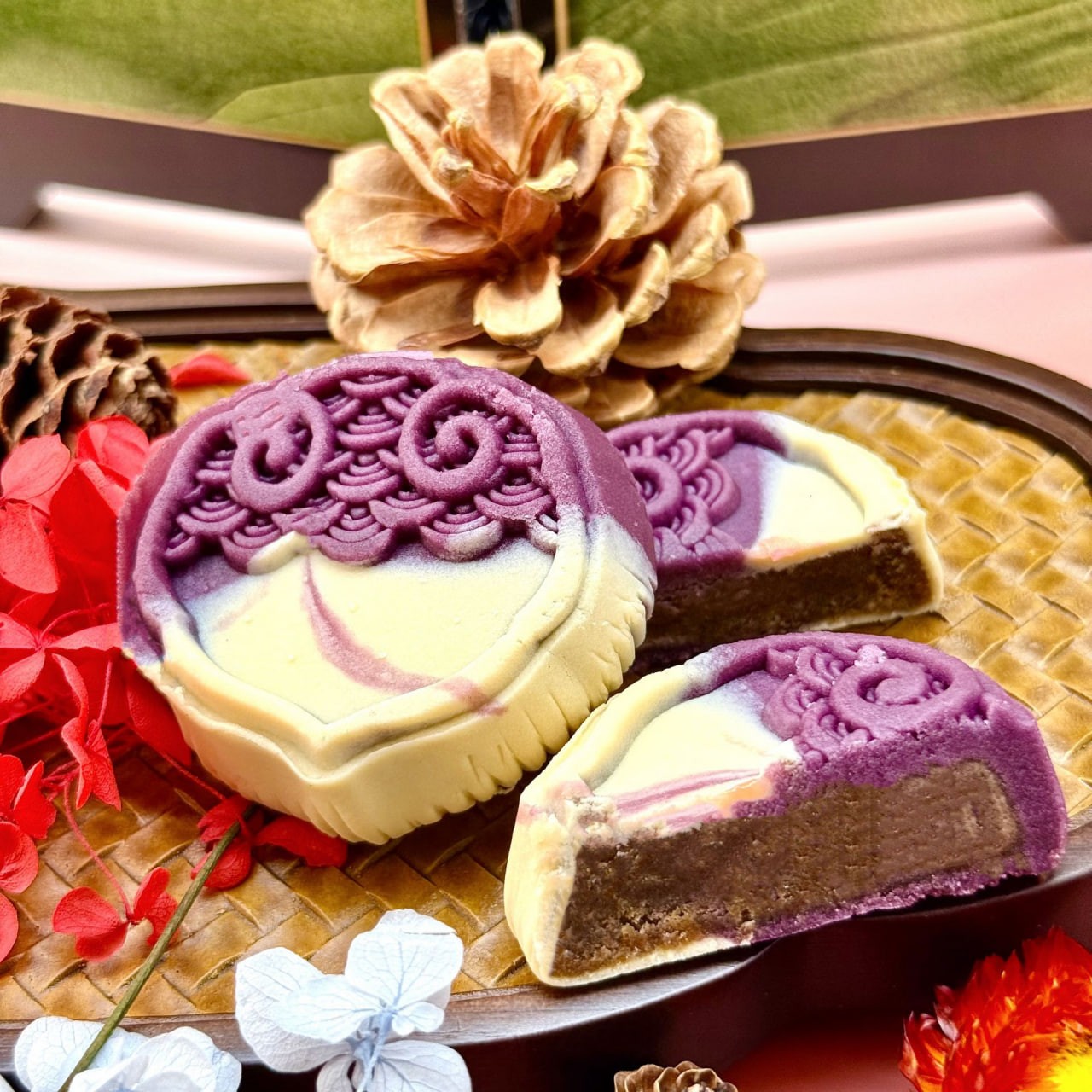 Mondkuchen aus weißer Lotussamenpaste mit doppeltem Eigelb