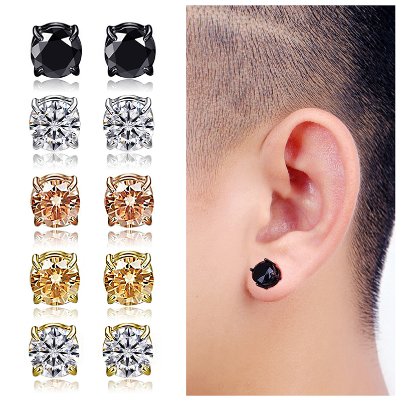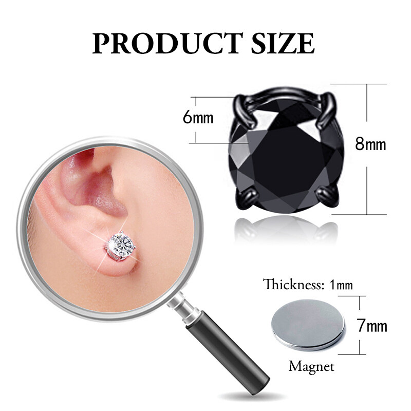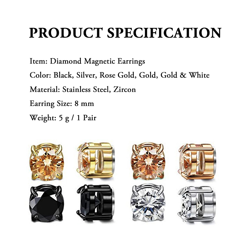 Bravego 1 Pair Diamond Magnetic Earrings Stainless Steel Non Piercing Ear Studs Magnet Clip Earrings