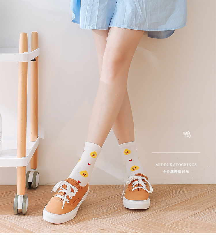 (10 pairs, 10 colors) Brown bear socks For Women Men Kids Children Cute Cartoon Short Socks