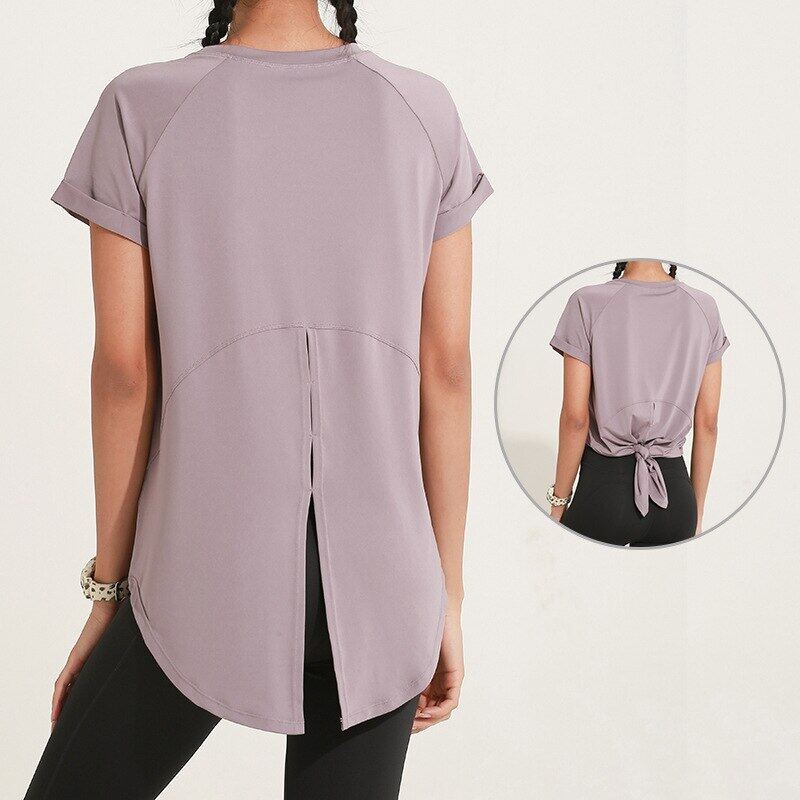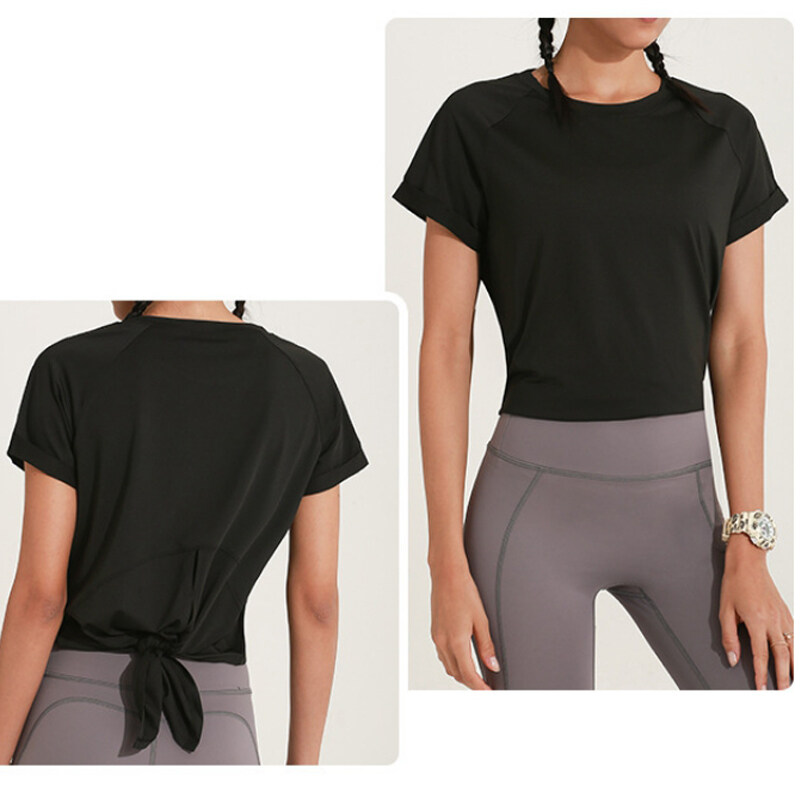 Jaga Ball Sport Shirt Fitness Seamless Tie Back Crop Top Yoga Tank Workout Tops Dry Fit Women Gym Running Sports T shirt Activewear Shirts