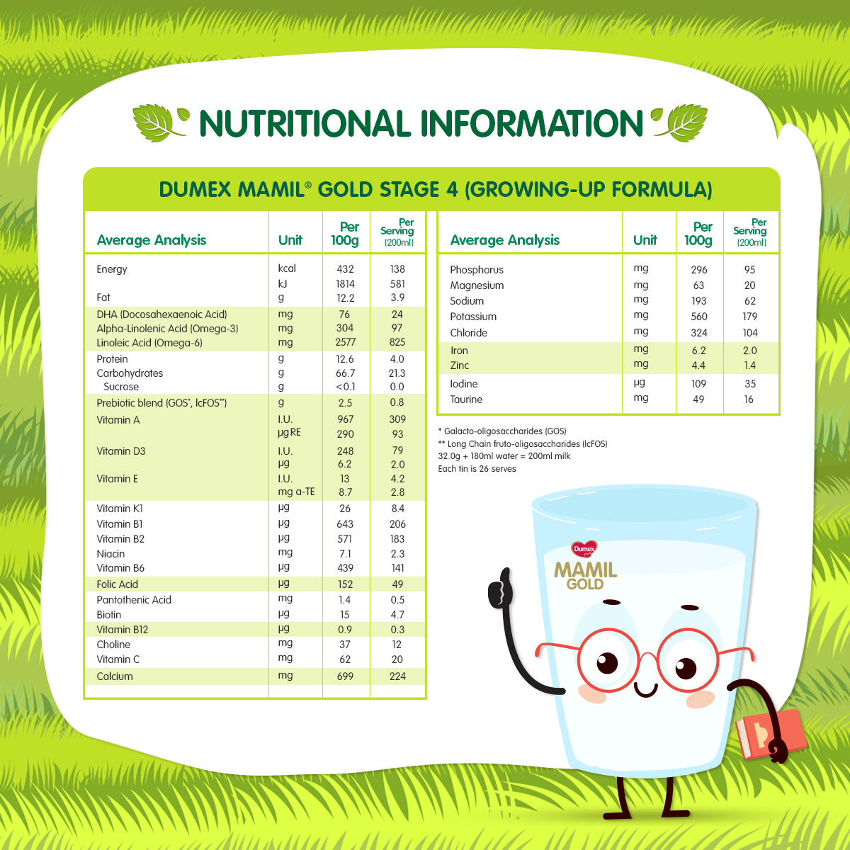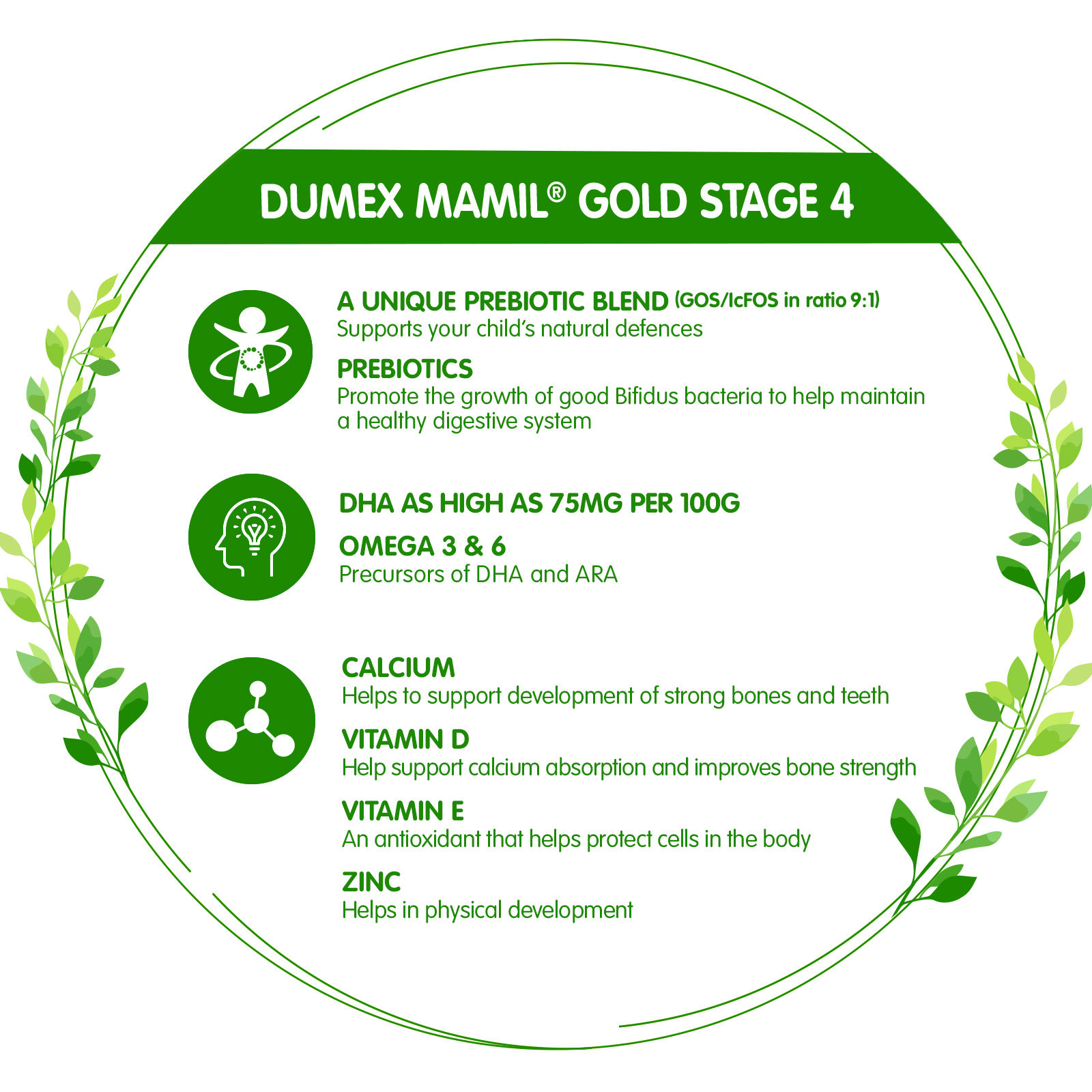 Dumex Mamil Gold Stage 4 Growing Up Kid Milk Formula (1.6kg) x 4 + Free 850g x 2