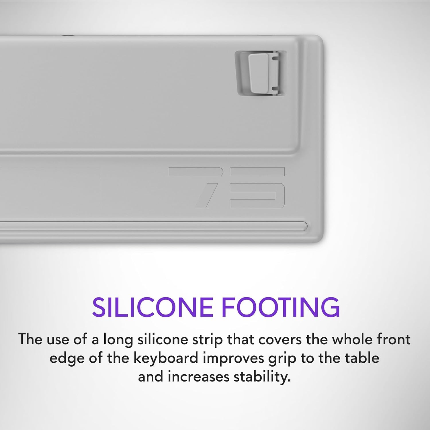 Silicone footing: The use of a long silicone strip that covers the whole front edge of the keyboard improves grip to the table and increases stability. Identified by professionals as a must have for stability in intense moments.