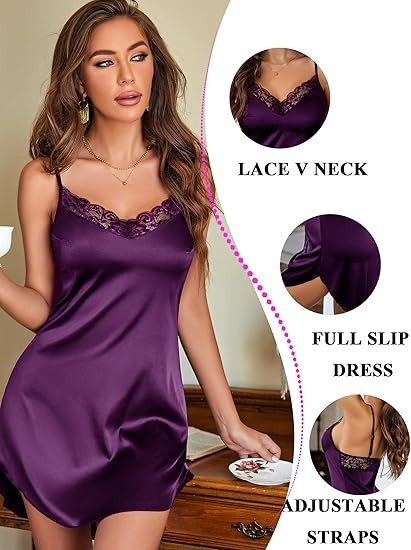 • This women’s satin lace full slip chemise lingerie is perfect for Sleepwear, Nightwear, Loungwear, Bride Wedding, Honeymoon Nights, Valentine’s Day, Date Nights, Bedroom, Lingerie Party, or Special Nights