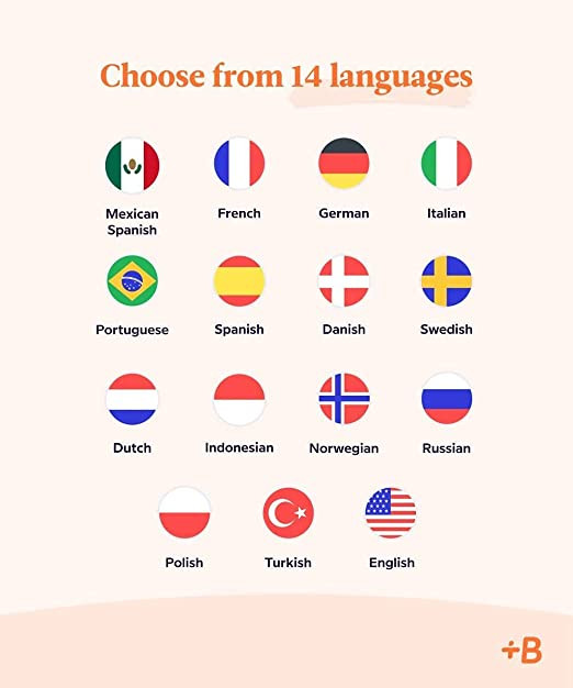 • LEARN A NEW LANGUAGE: Choose from 14 languages with Babbel, the #1 top-grossing language-learning app designed with 100+ linguistic experts. Available languages are: Spanish, French, Italian, German, Portuguese, Russian, Polish, Turkish, Norwegian, Danish, Swedish, Dutch, Indonesian, and English