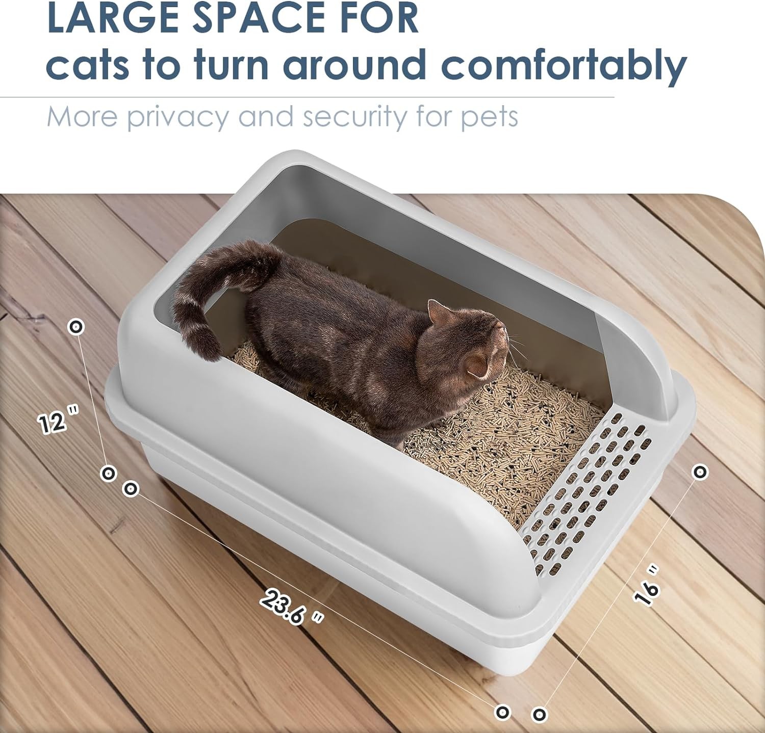 • Great for High Peeing Cat - Reinforced plastic enclosure clasps firmly on the high sided stainless steel cat litter box, won't be kicked off easily when your cats jump out. The overlap design keeping the urine in the box instead of seeping through the seam. No more worrying about cat urine spilling everywhere. A blessing for high pee-er!