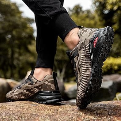 VERY FASHIONABLE: The outdoor walking shoes include camouflage, black and red colors, which makes this trail running shoe more attractive. The men's camouflage fashion sneakers are a great choice for many outdoor enthusiasts.