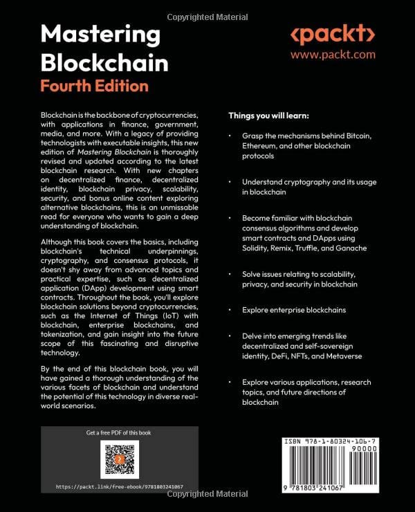Blockchain is the backbone of cryptocurrencies, with applications in finance, government, media, and more. With a legacy of providing technologists with executable insights, this new edition of Mastering Blockchain is thoroughly revised and updated according to the latest blockchain research. With new chapters on decentralized finance, decentralized identity, blockchain privacy, scalability, security, and bonus online content exploring alternative blockchains, this is an unmissable read for everyone who wants to gain a deep understanding of blockchain.
