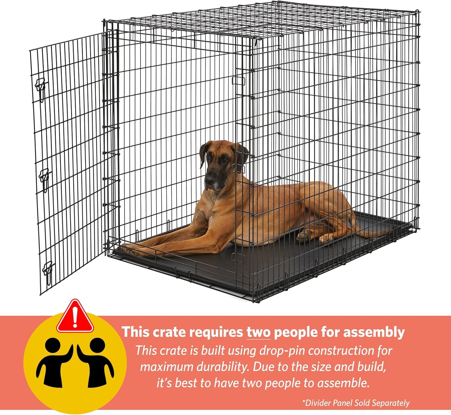 Midwest Homes for Pets Ginormous Single Door 54-Inch Dog Crate for XXL Dogs Breeds; Great Dane, Mastiff, St. Bernard, Drop Pin Assembly Requires Two People; Divider Panel Not Included; Black: SL54