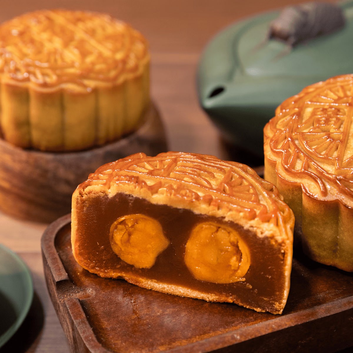 Mondkuchen aus roter Lotussamenpaste mit doppeltem Eigelb