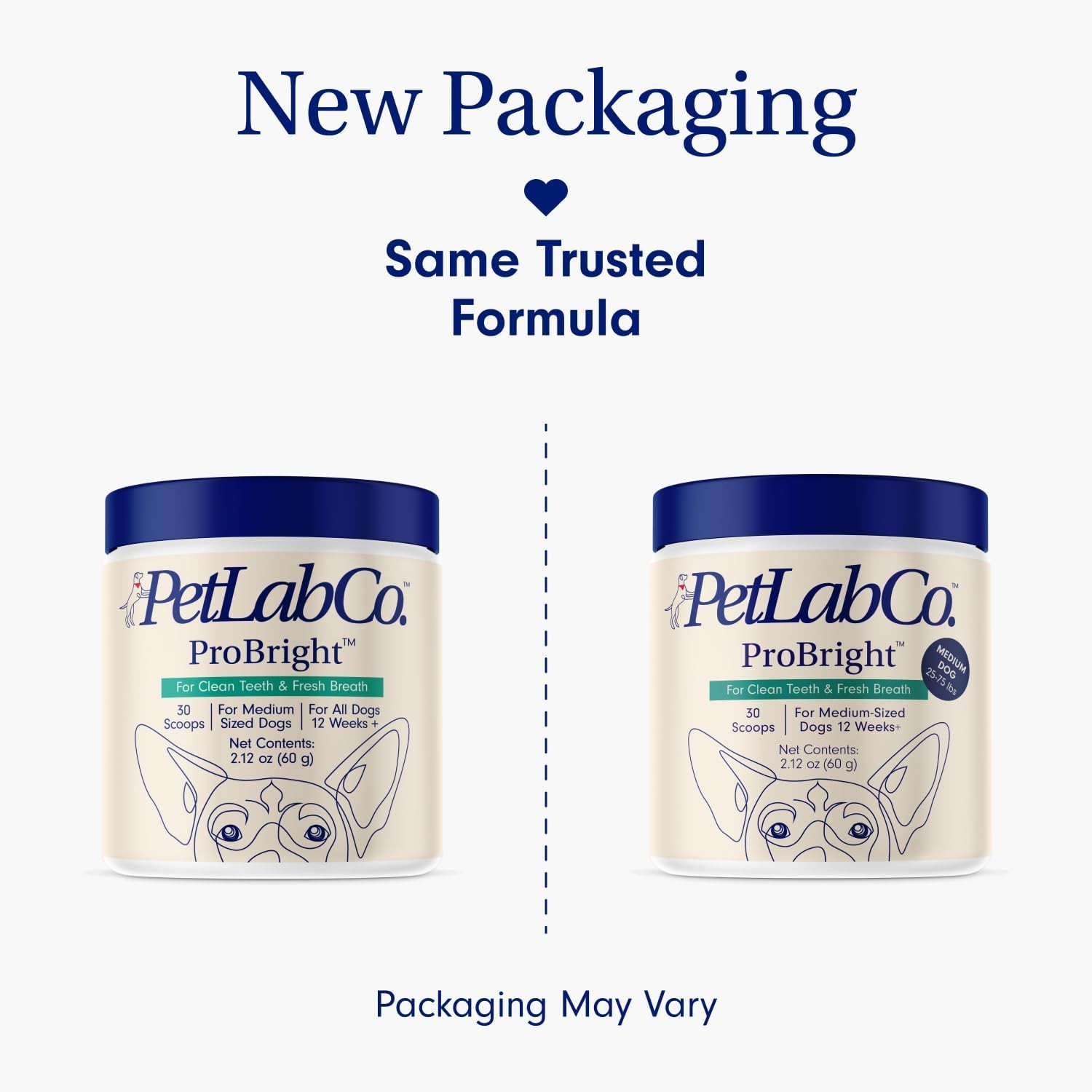 PetLab Co. ProBright Dental Powder - Dog Breath Freshener - Teeth Cleaning Made Easy – Targets Tartar & Bad Breath - Formulated for Small Dogs