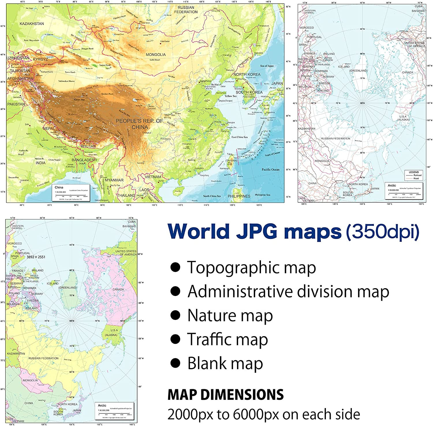 Included in the database are maps of the entire world, large states, and surrounding areas, as well as country-specific data for all 196 countries, all in white maps.