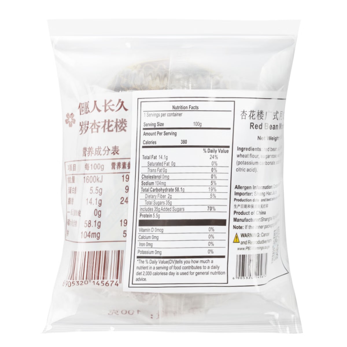 Xing Hua Lou Rose Bean Paste Moon Cake 1pc 100 g